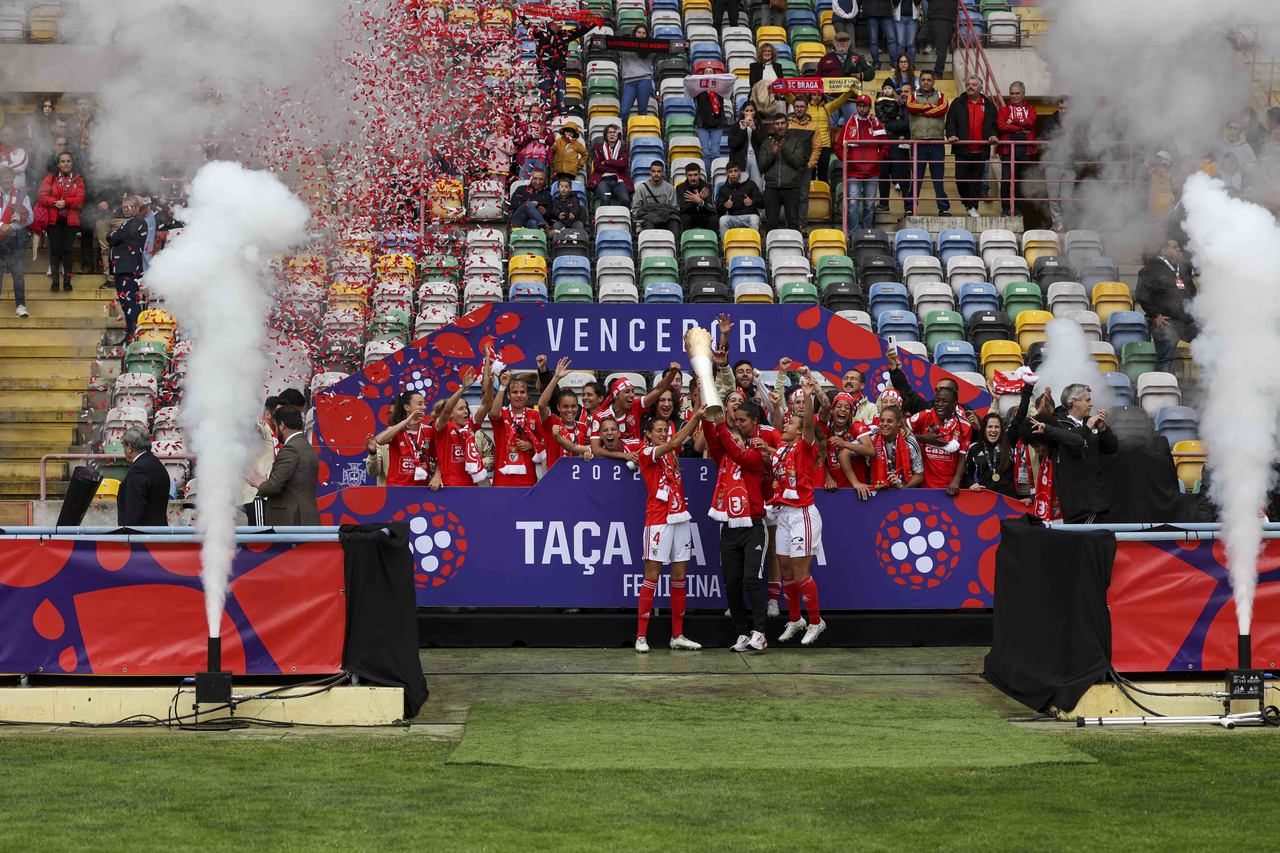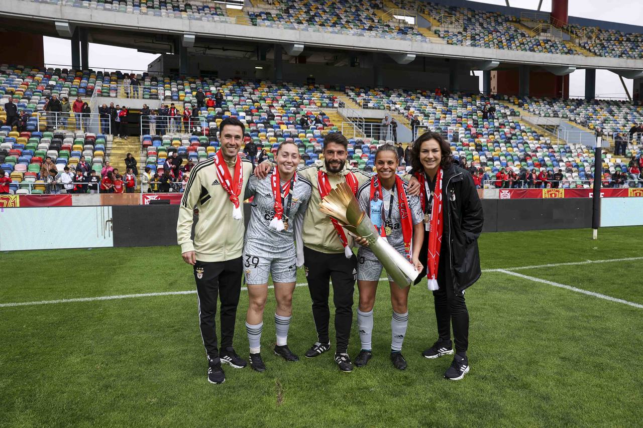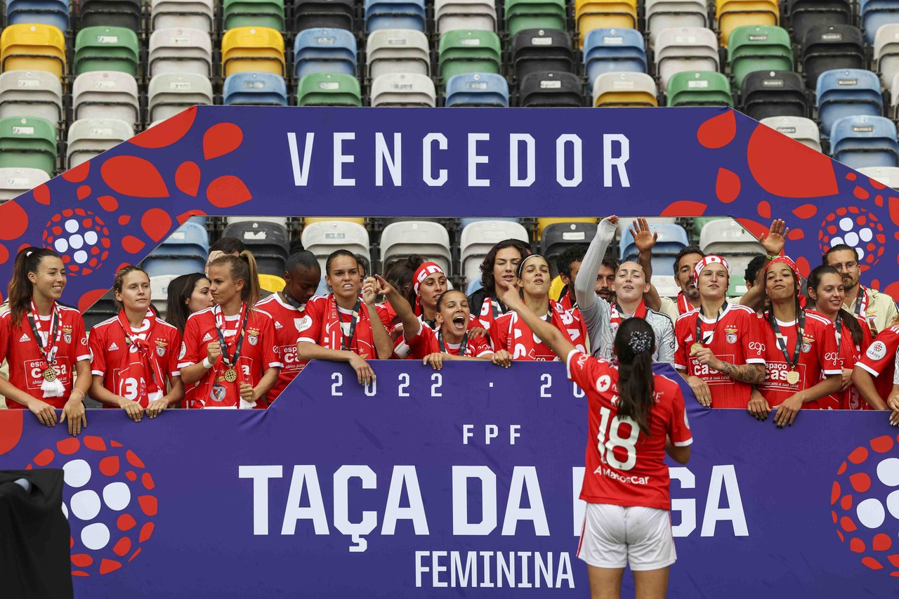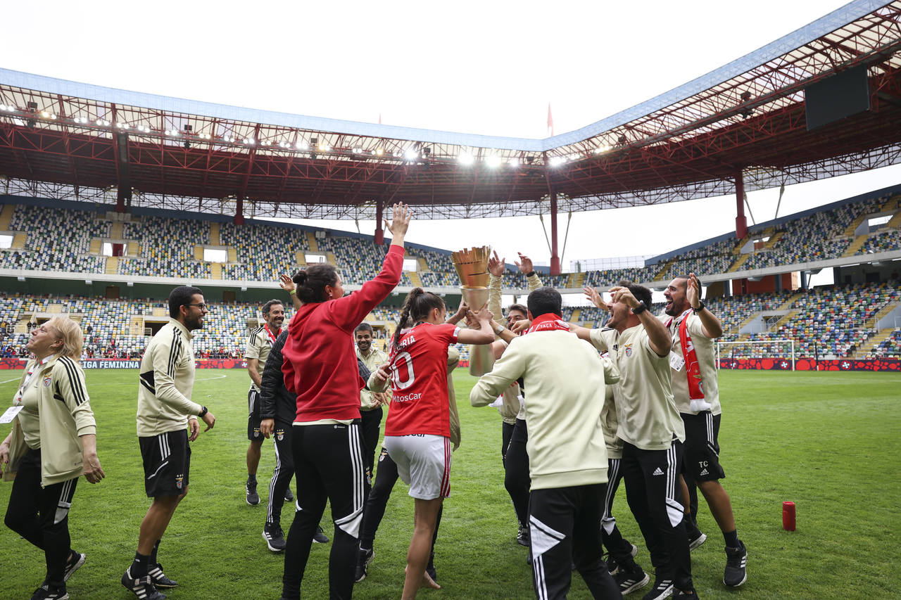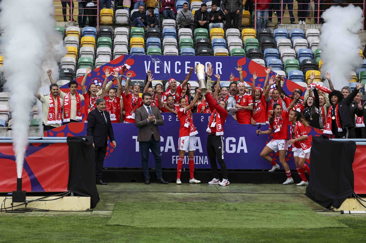 Benfica's women's football team beat Braga by 3-1 in the League Cup final, in a match held this Saturday, April 1, at the Estádio Municipal de Aveiro. Here are the best images of the celebrations after winning the trophy, the 3rd in the Club's history.