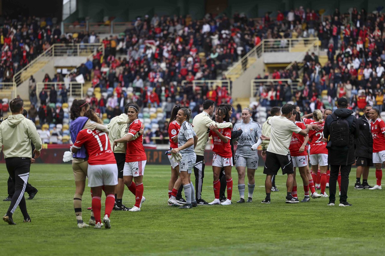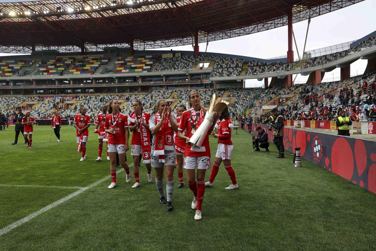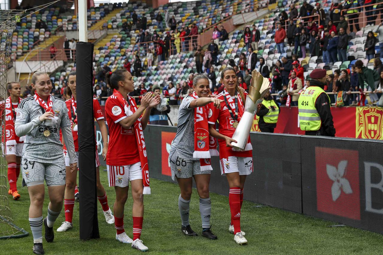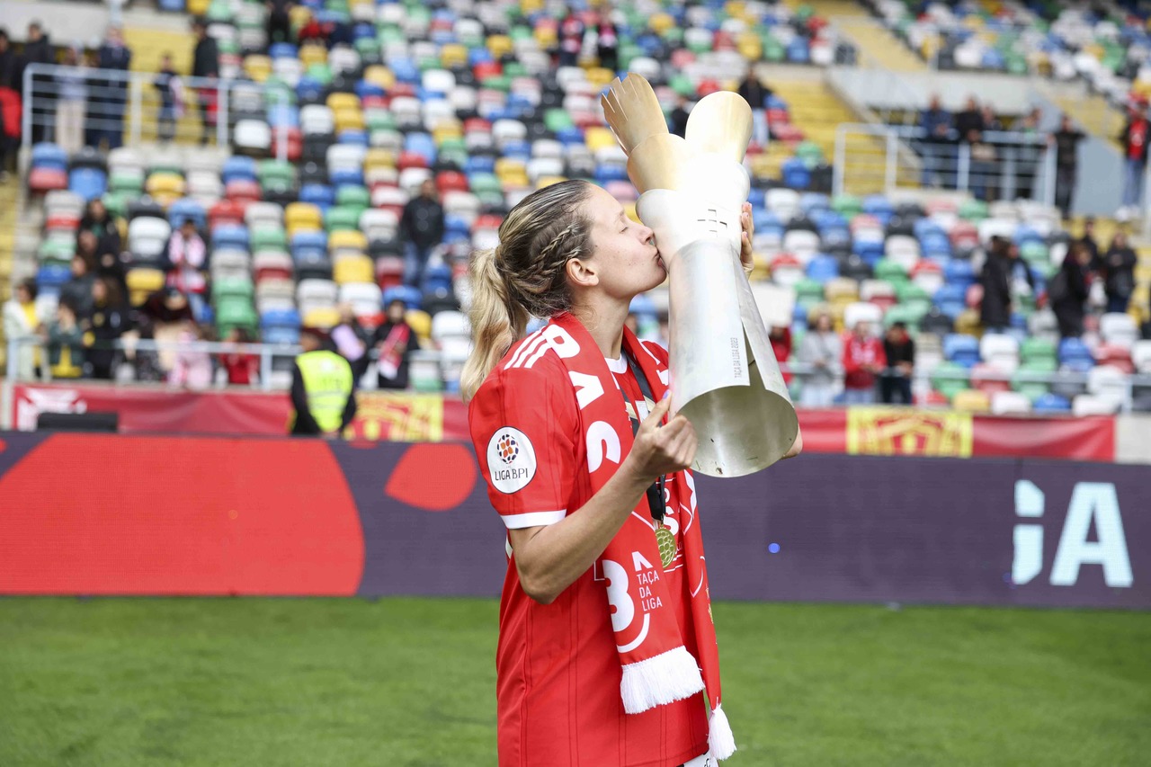 Benfica's women's football team beat Braga by 3-1 in the League Cup final, in a match held this Saturday, April 1, at the Estádio Municipal de Aveiro. Here are the best images of the celebrations after winning the trophy, the 3rd in the Club's history.