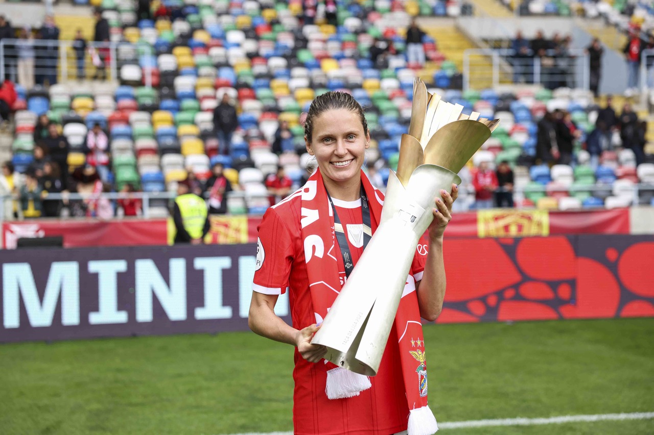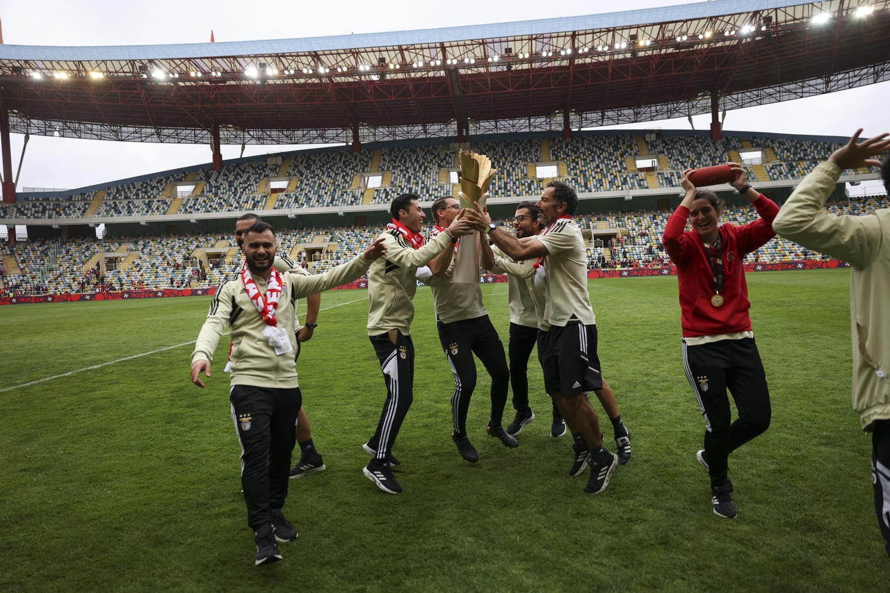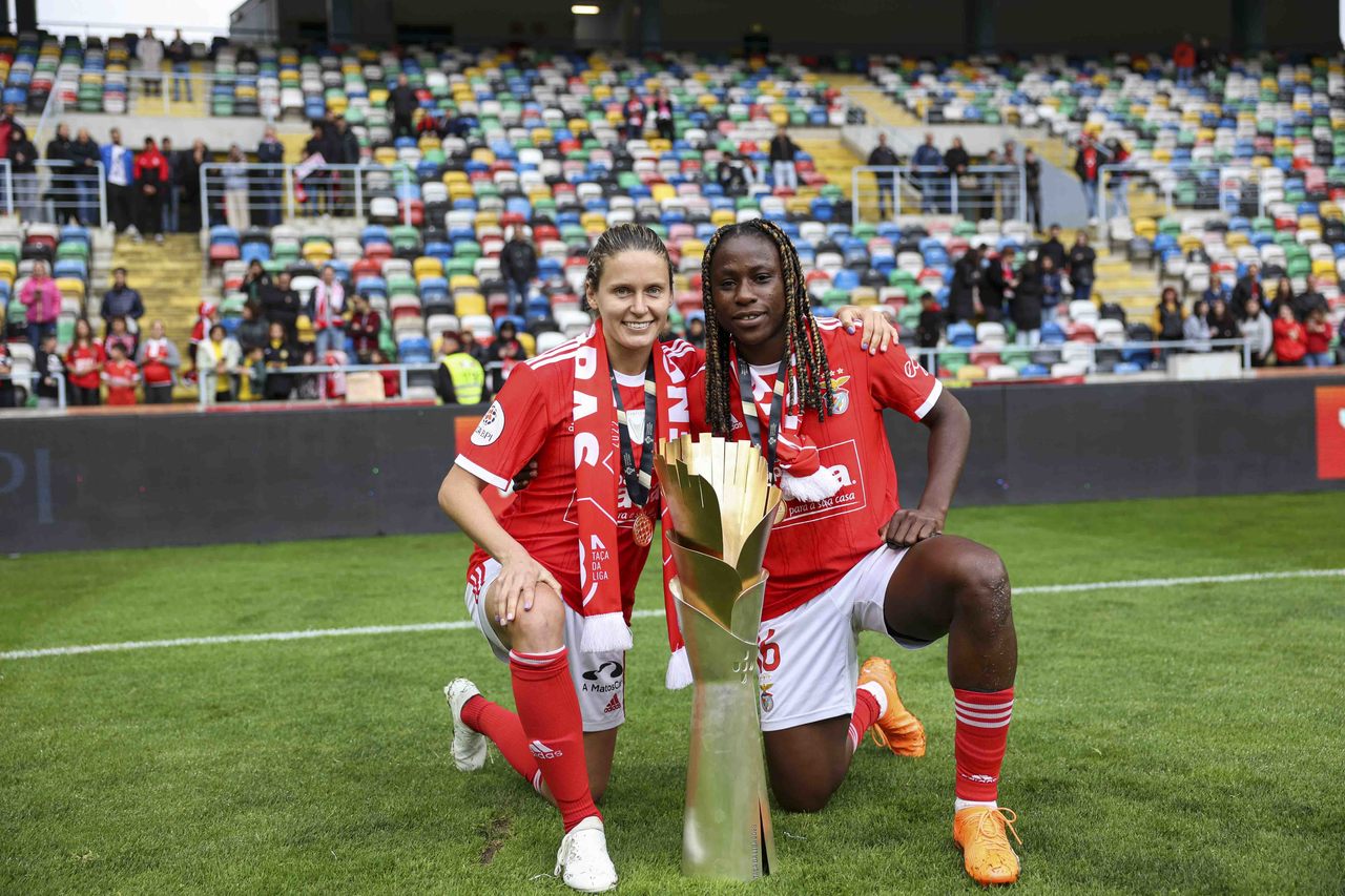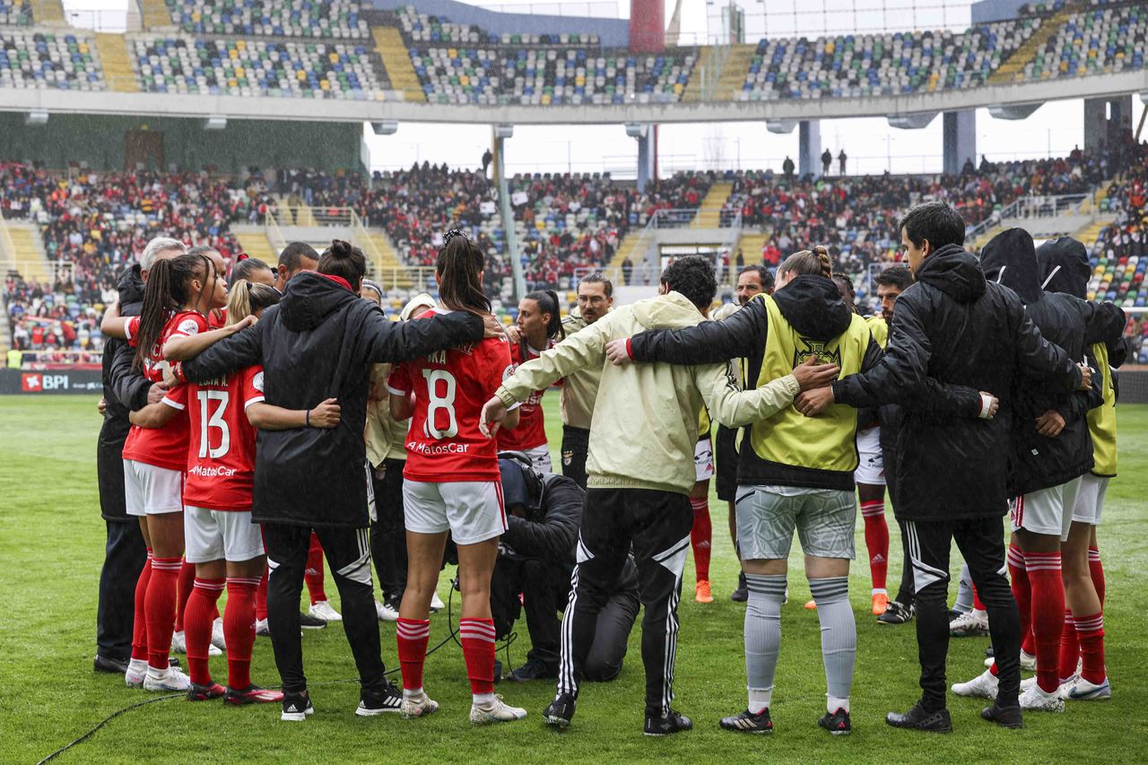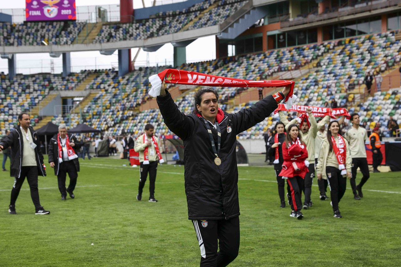 Benfica's women's football team beat Braga by 3-1 in the League Cup final, in a match held this Saturday, April 1, at the Estádio Municipal de Aveiro. Here are the best images of the celebrations after winning the trophy, the 3rd in the Club's history.