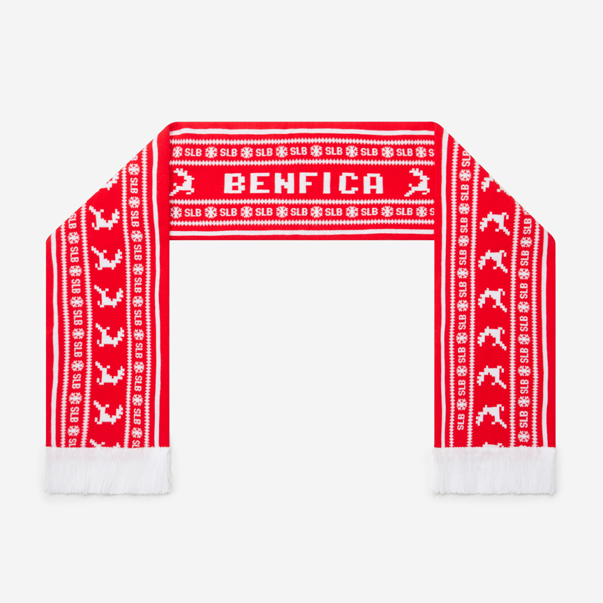 Get fully equipped for the holiday season with the red Christmas scarf with reindeer from Sport Lisboa e Benfica.