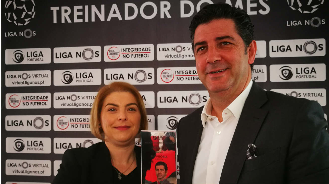 La mañana en el Caixa Futebol Campus terminó con la entrega del premio de Mejor Entrenador del mes de enero. Rui Vitória ha recibido la distinción de la Liga Portuguesa de Futebol Profissional, entregada personalmente por Helena Pires, directora de Competiciones.