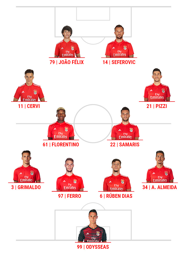 Centrocampistas: Zivkovic, Florentino, Samaris, Pizzi, Gedson Fernandes, Adel Taarabt, Franco Cervi y Salvio;