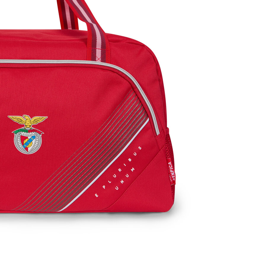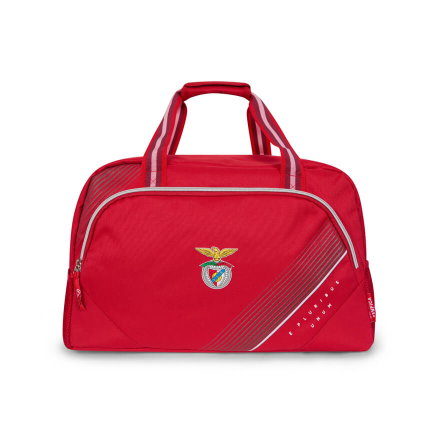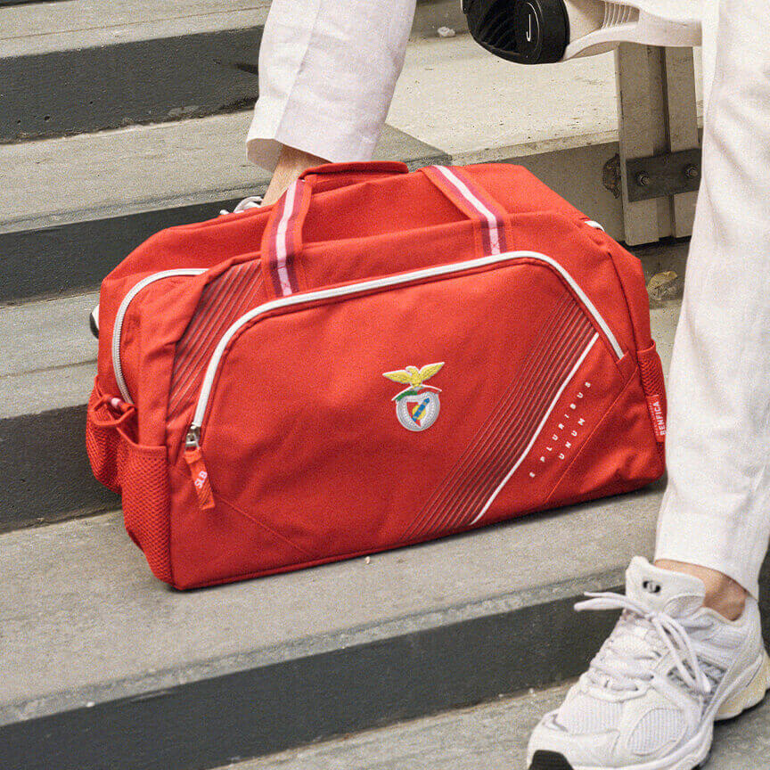 Bolsa de deporte roja con el emblema del Sport Lisboa e Benfica. Tiene un compartimento principal, un bolsillo frontal, dos asas y una correa ajustable para una máxima comodidad. Ideal para deportistas o para viajar.