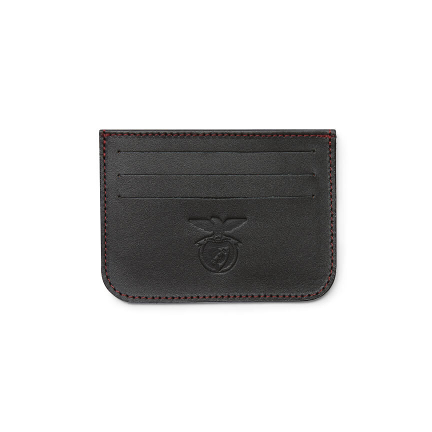 Set con un tarjetero negro con el emblema del Sport Lisboa e Benfica y un bolígrafo rojo con la inscripción SL Benfica.
