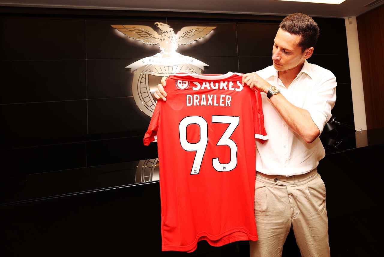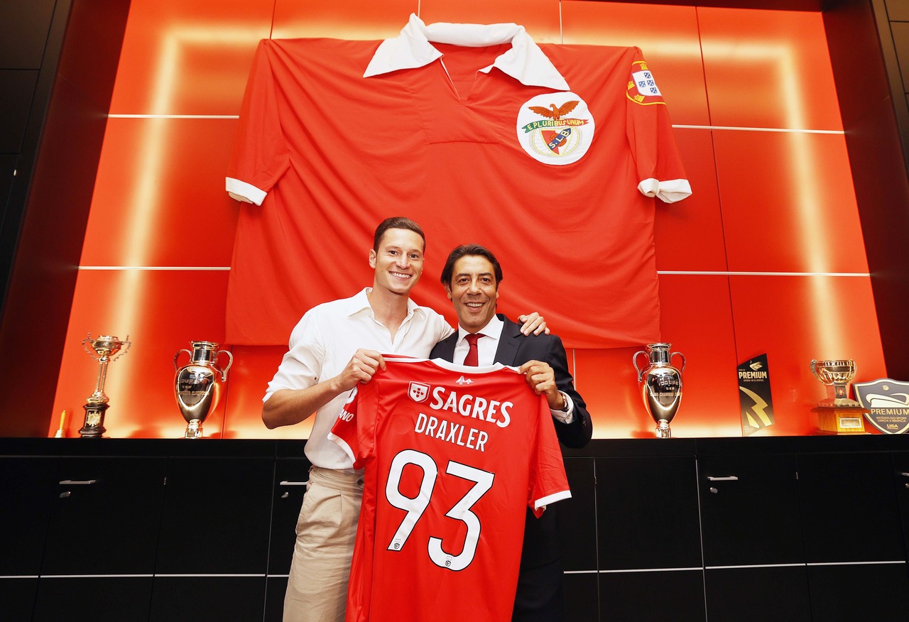 Draxler est du Benfica ! Aux côtés du Président du SL Benfica Rui Costa, le milieu de terrain, international et Champion du Monde avec l'Allemagne, s'est engagé avec les Aigles.