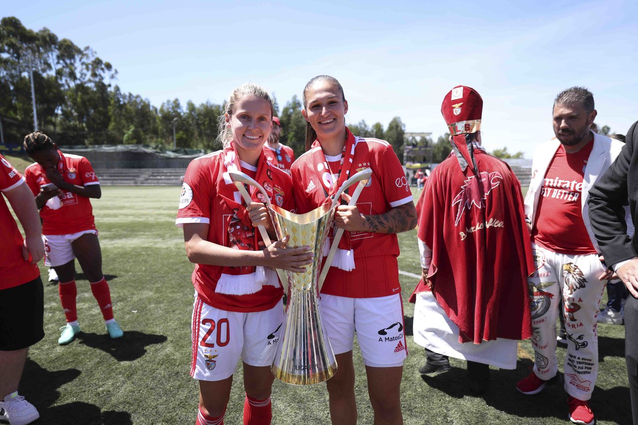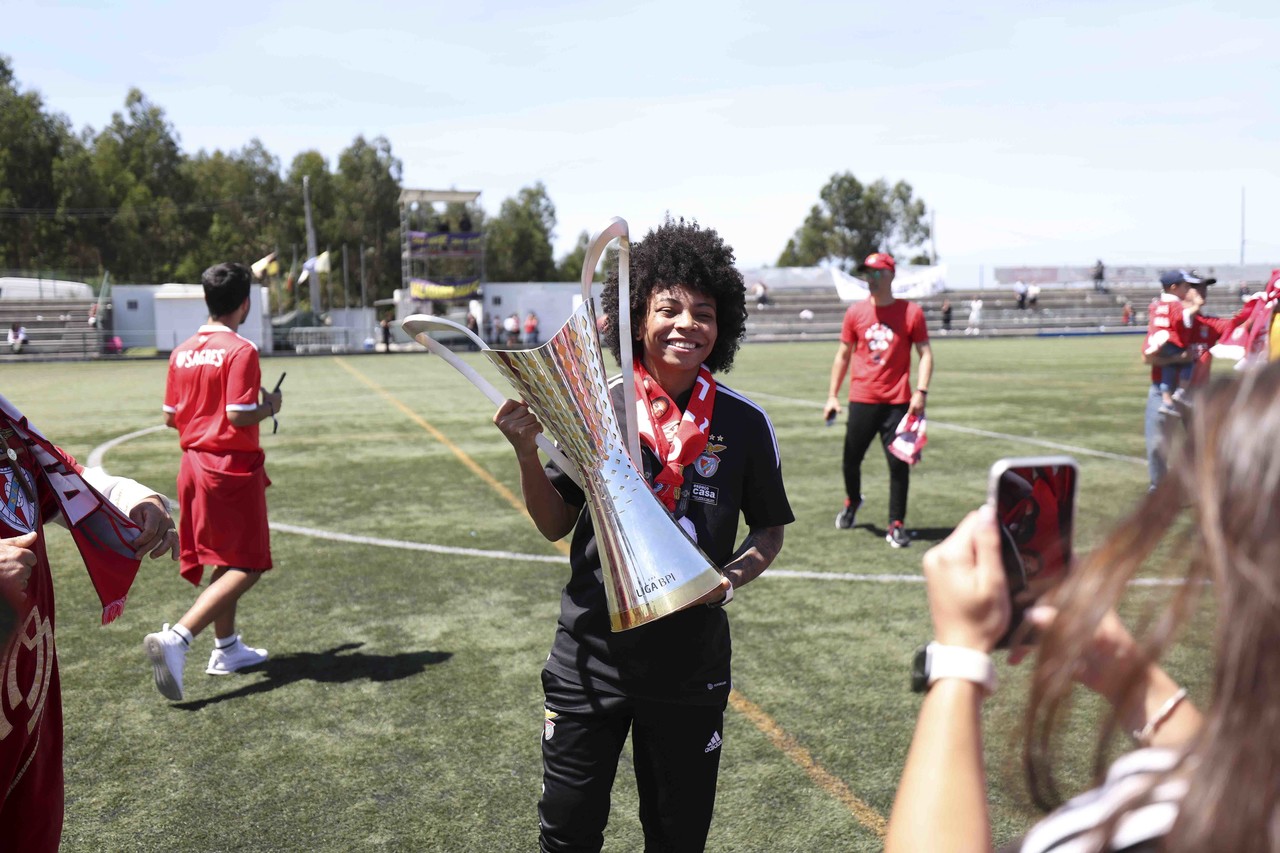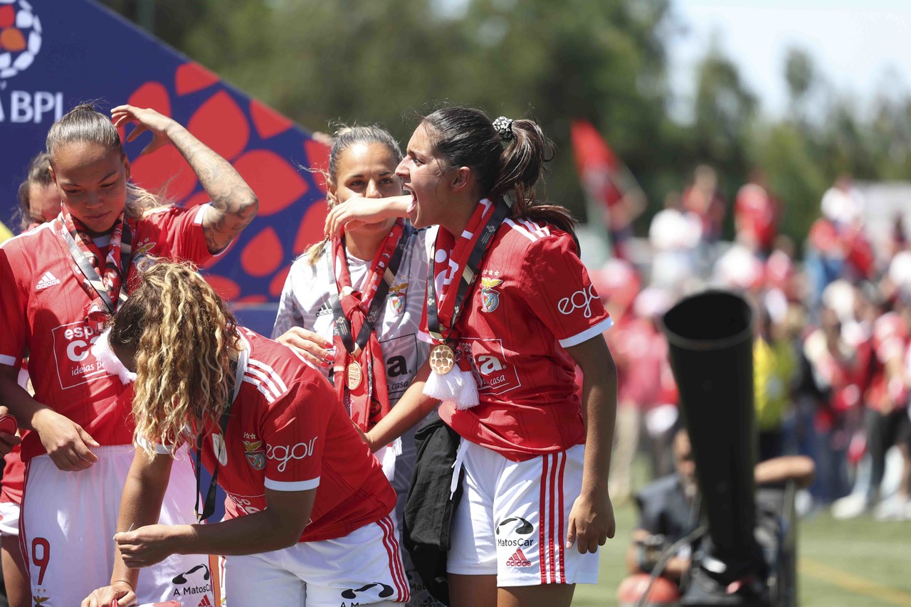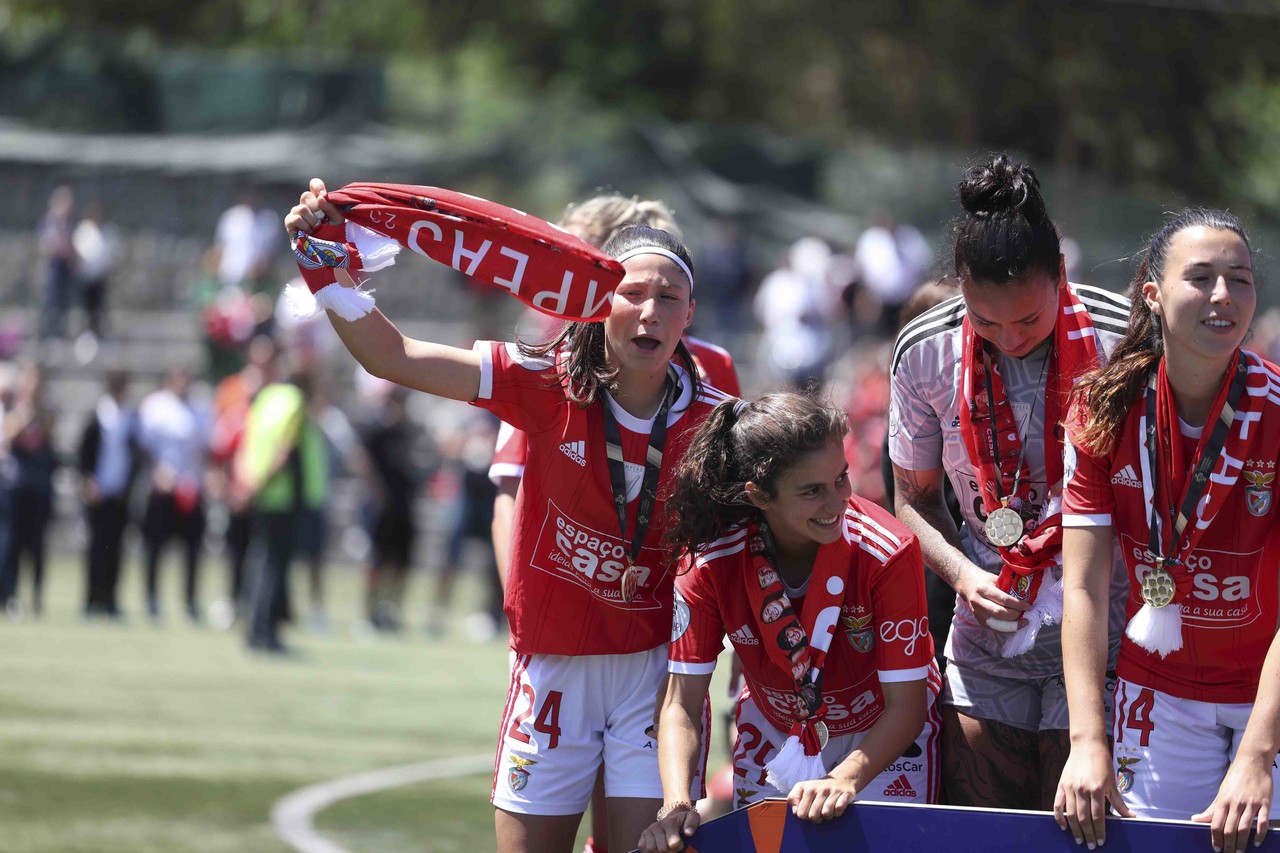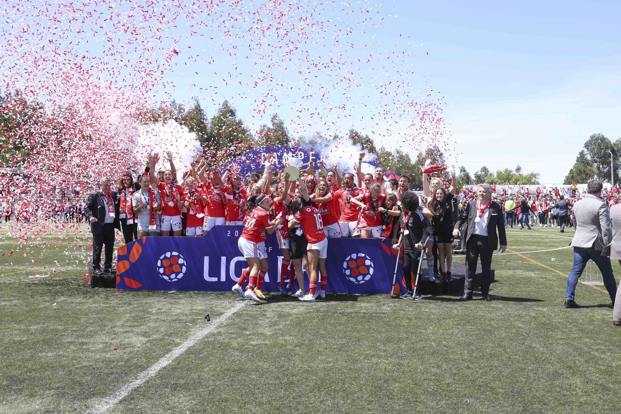 L'équipe féminine de football du SL Benfica a battu, ce dimanche 7 mai, le Valadares-Gaia par 0-2 et a fêté le troisième Championnat consécutif de la Liga BPI à deux journées de la finale de la compétition. Découvrez ici les meilleures images de la conquête du trophée, le 3e dans l'histoire du Club.