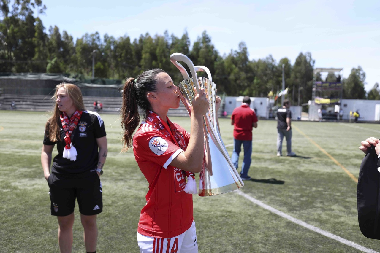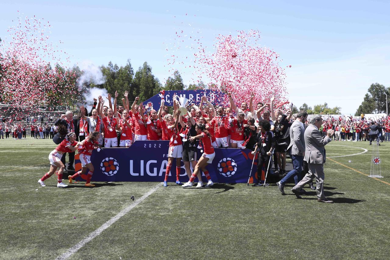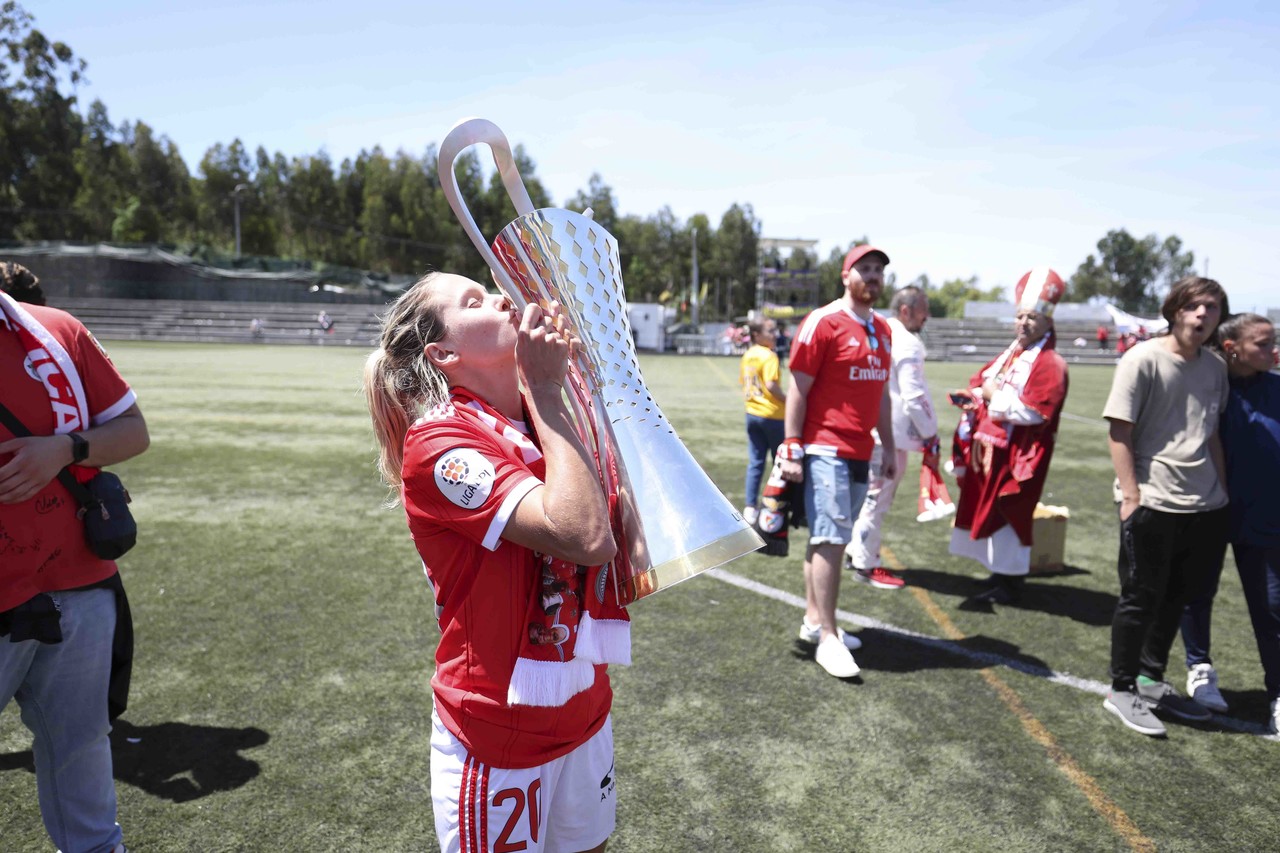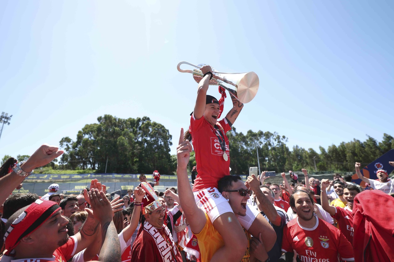 L'équipe féminine de football du SL Benfica a battu, ce dimanche 7 mai, le Valadares-Gaia par 0-2 et a fêté le troisième Championnat consécutif de la Liga BPI à deux journées de la finale de la compétition. Découvrez ici les meilleures images de la conquête du trophée, le 3e dans l'histoire du Club.