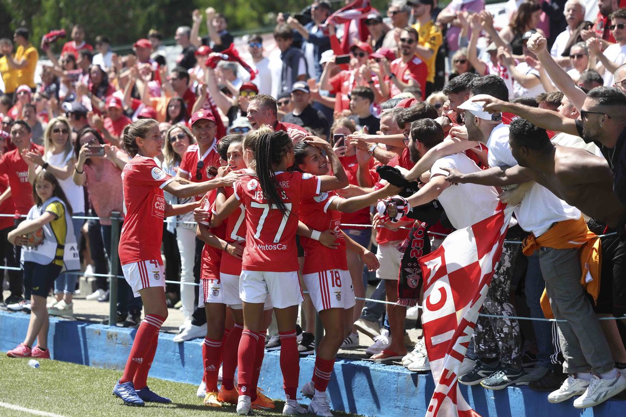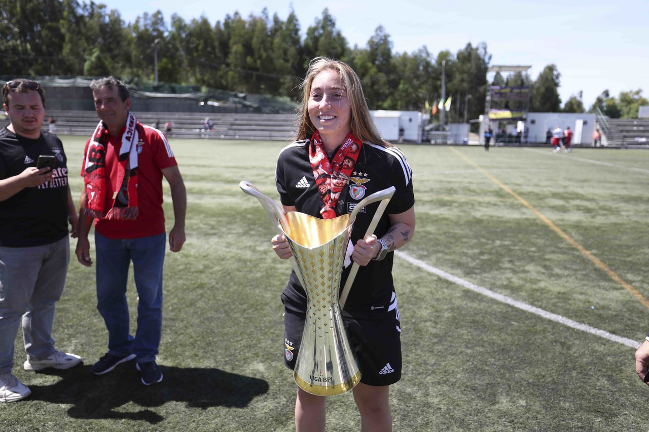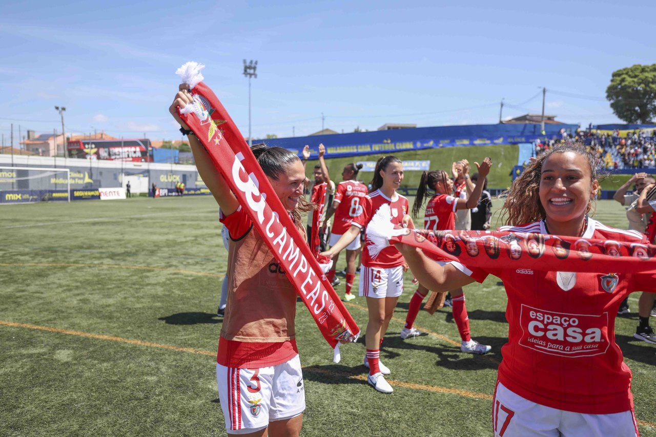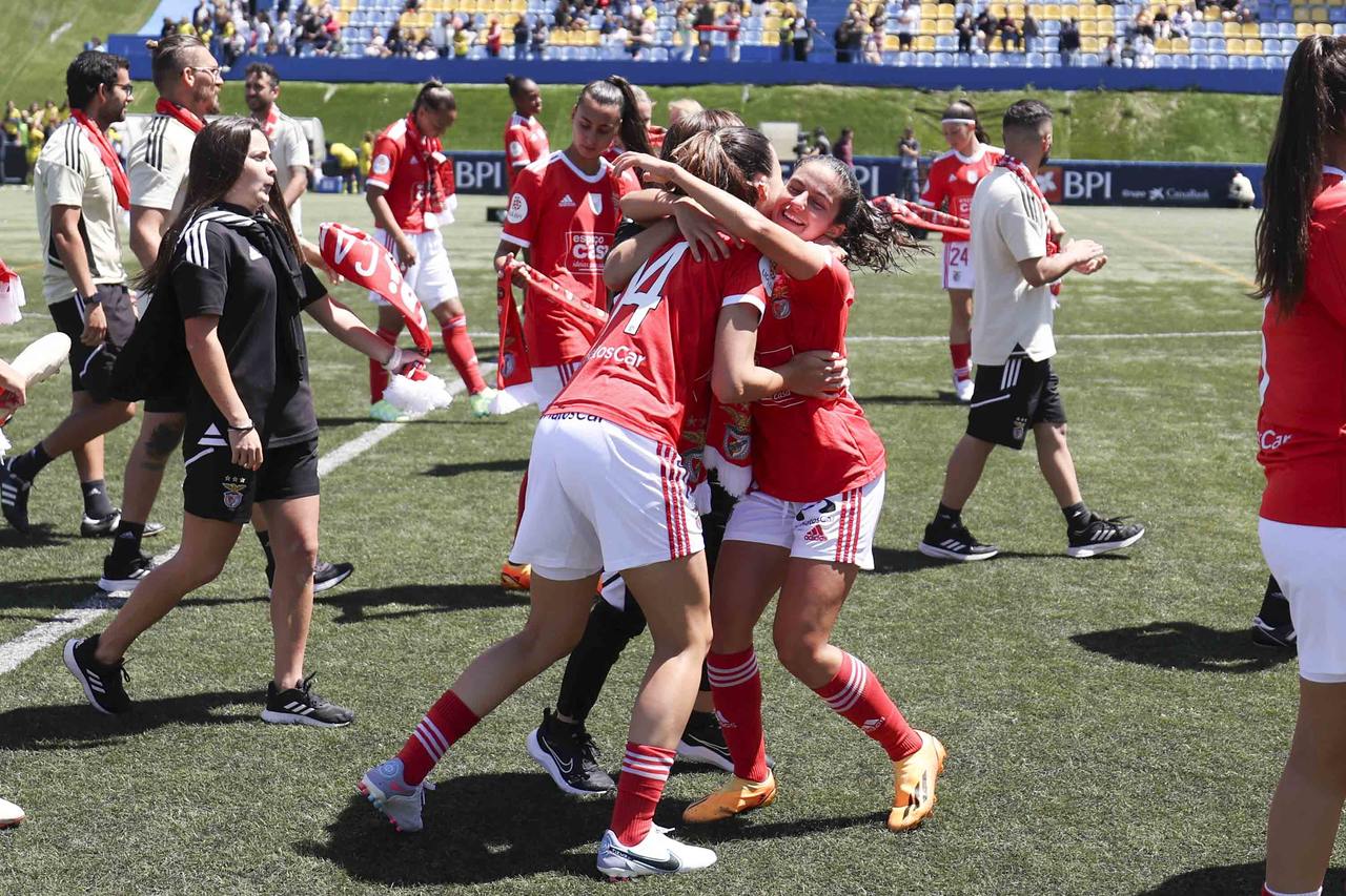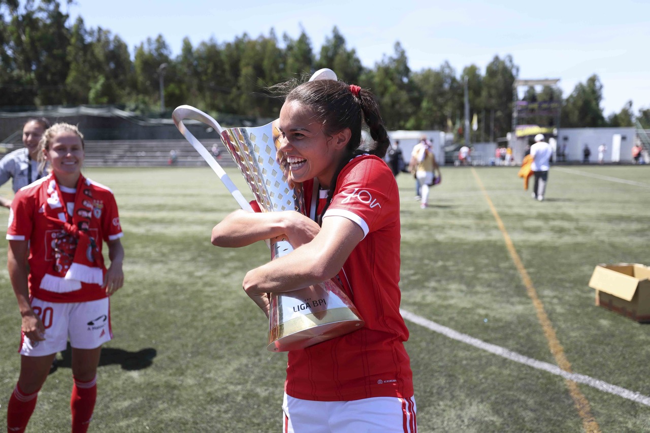 L'équipe féminine de football du SL Benfica a battu, ce dimanche 7 mai, le Valadares-Gaia par 0-2 et a fêté le troisième Championnat consécutif de la Liga BPI à deux journées de la finale de la compétition. Découvrez ici les meilleures images de la conquête du trophée, le 3e dans l'histoire du Club.