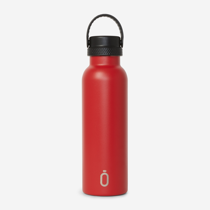 Le couvercle est vissé pour assurer l'étanchéité de la bouteille et est muni d'une poignée pour faciliter son transport.