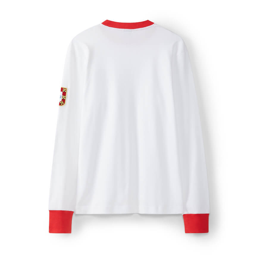 Maillot blanc à col rond et rouge. Manche rouge au niveau du poignet. Logo rétro brodé sur le maillot, les quinas de Champions Nationaux sont brodés sur la manche gauche. 100% coton. Histoire du mai...