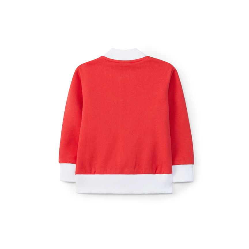 Veste rouge avec fermeture éclair le long de la veste, l'emblème vintage du club brodé sur le côté gauche de la poitrine et le col, les poignets et la taille en côtes blanches.