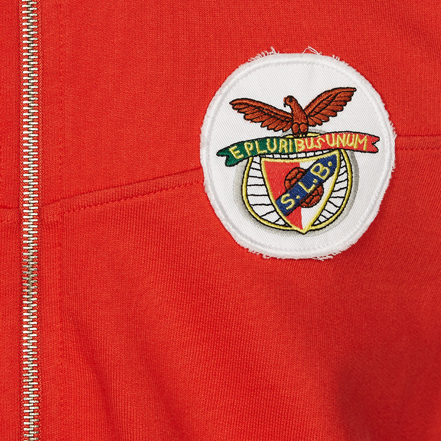 "Veste rouge avec fermeture éclair métallique. Logo rétro brodé devant. 100% coton. Histoire du maillot : Sueur et magie ! C'est le célèbre journaliste anglais Desmond Hackett, du Daily Express, qui l'a surnommé ""Panthère Noire"". Indomptable lors des matchs, rigoureux lors des entraînements. Il a porté plusieurs fois cette veste et il l'a enlevé sous les yeux de ceux qui comptaient voir sa magie les dimanches et les mercredis pendant les 15 époques qu'il a passé avec les aigles. 100% coton."