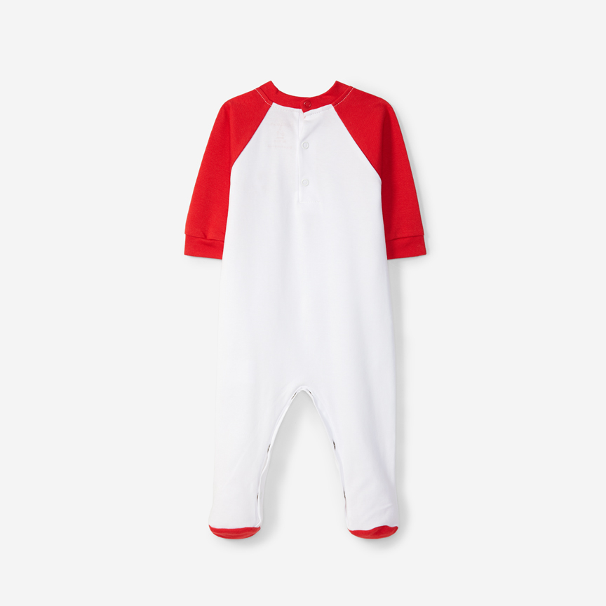 Grenouillère blanche avec l’emblème vintage du club et l’inscription "Benfica" en rouge.Manches et pieds rouges, avec des boutons-pression dans le dos et entre les jambes pour faciliter l’h...