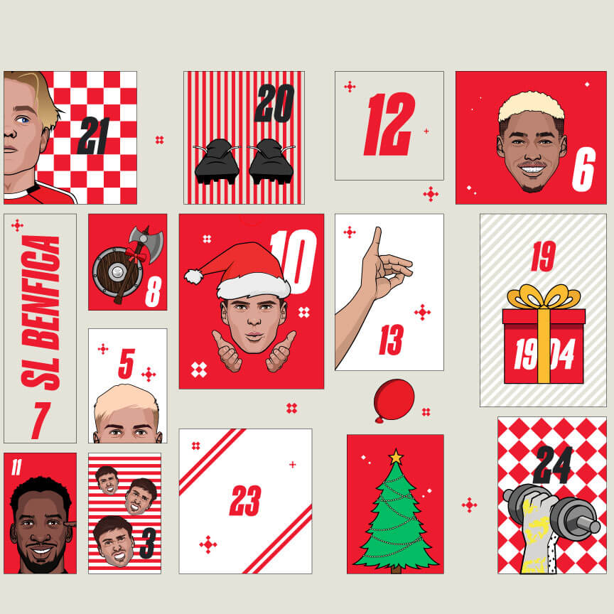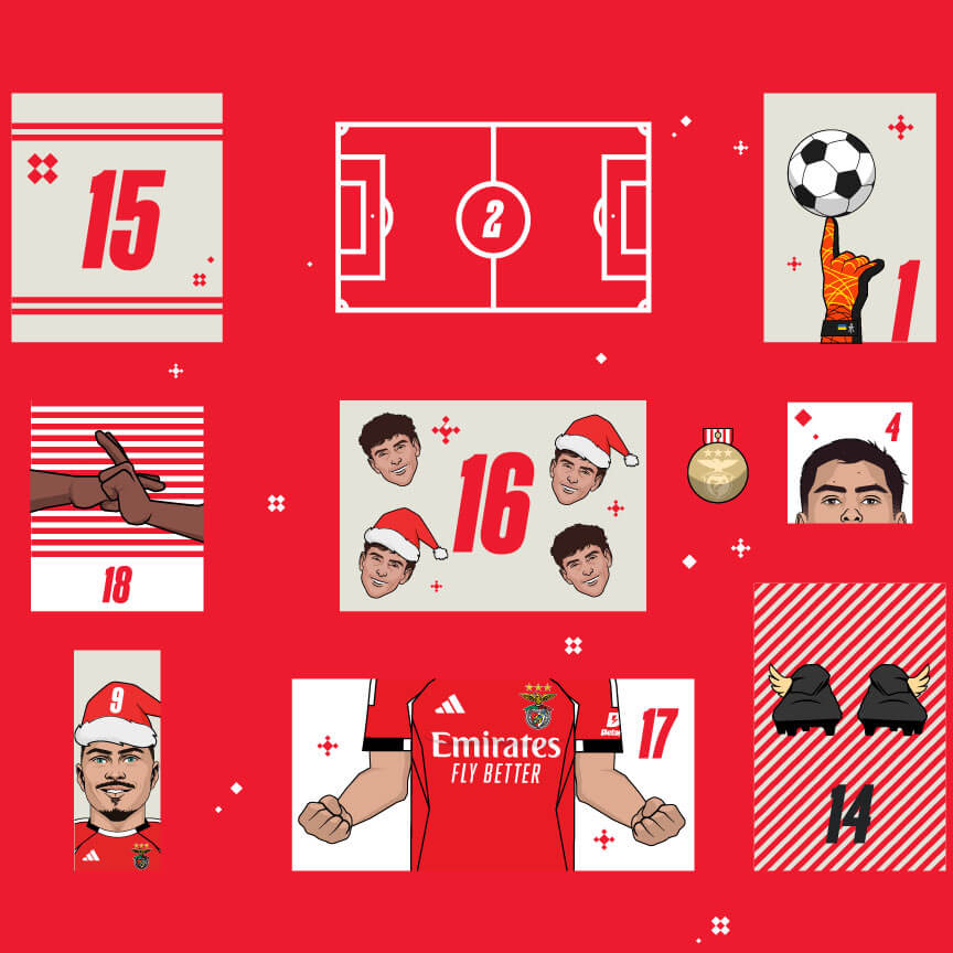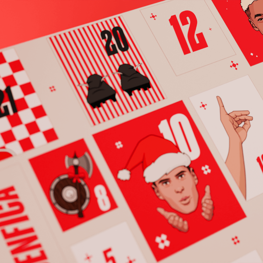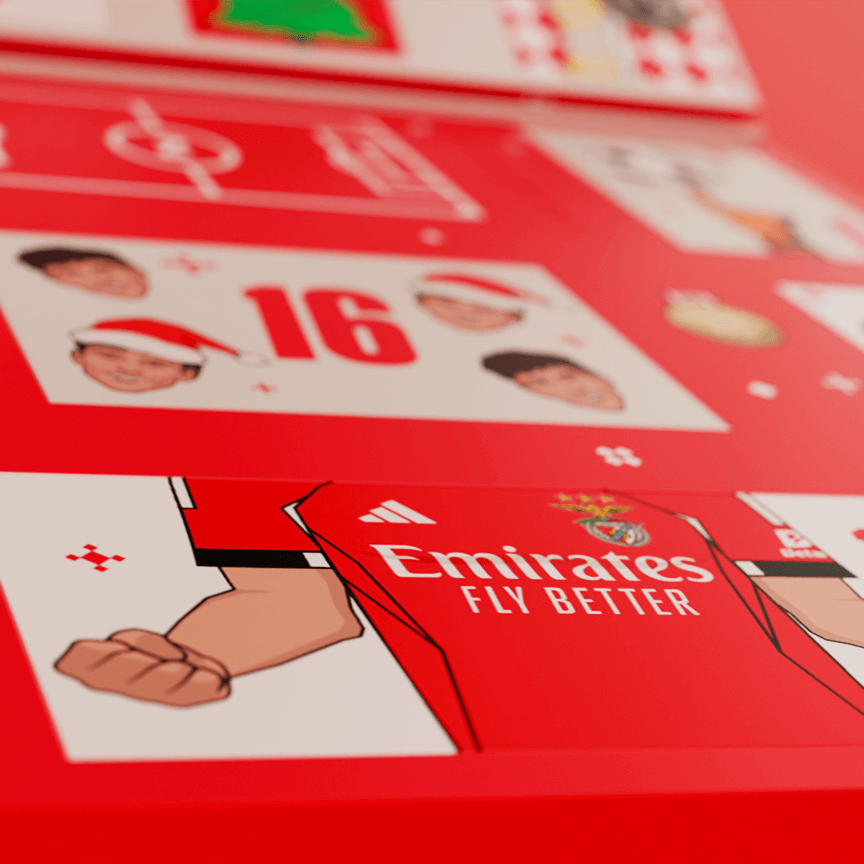 Du 1er au 24 décembre, chaque case cache une surprise du Glorieux, avec des articles officiels du Sport Lisboa e Benfica.