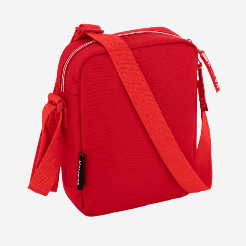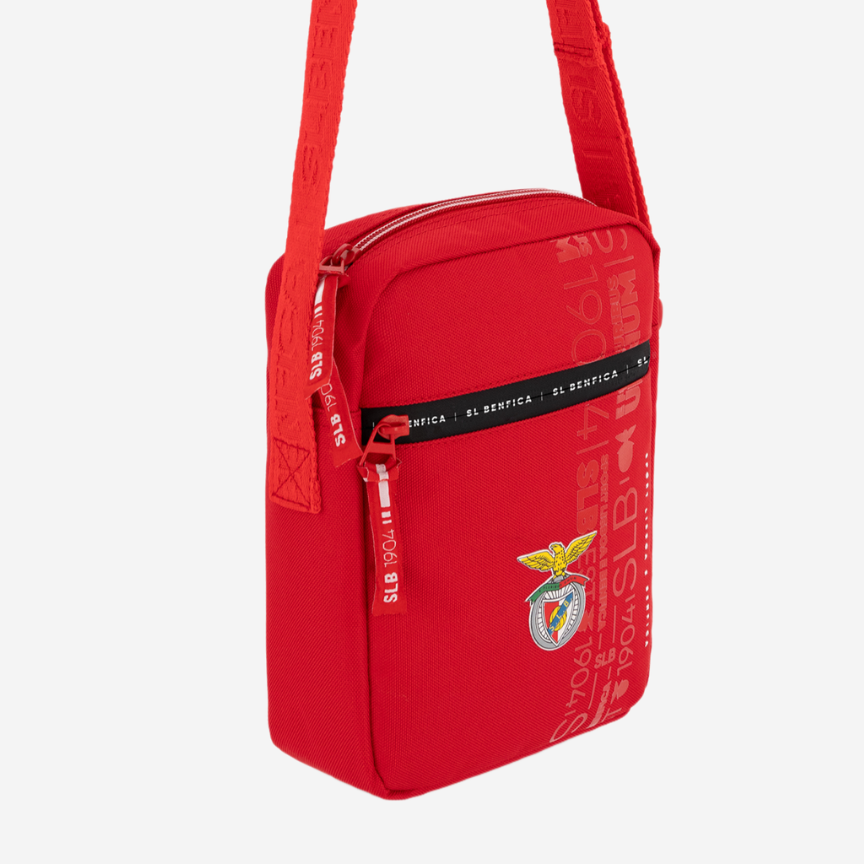 Sac à bandoulière rouge avec l'emblème du Sport Lisboa e Benfica au centre.