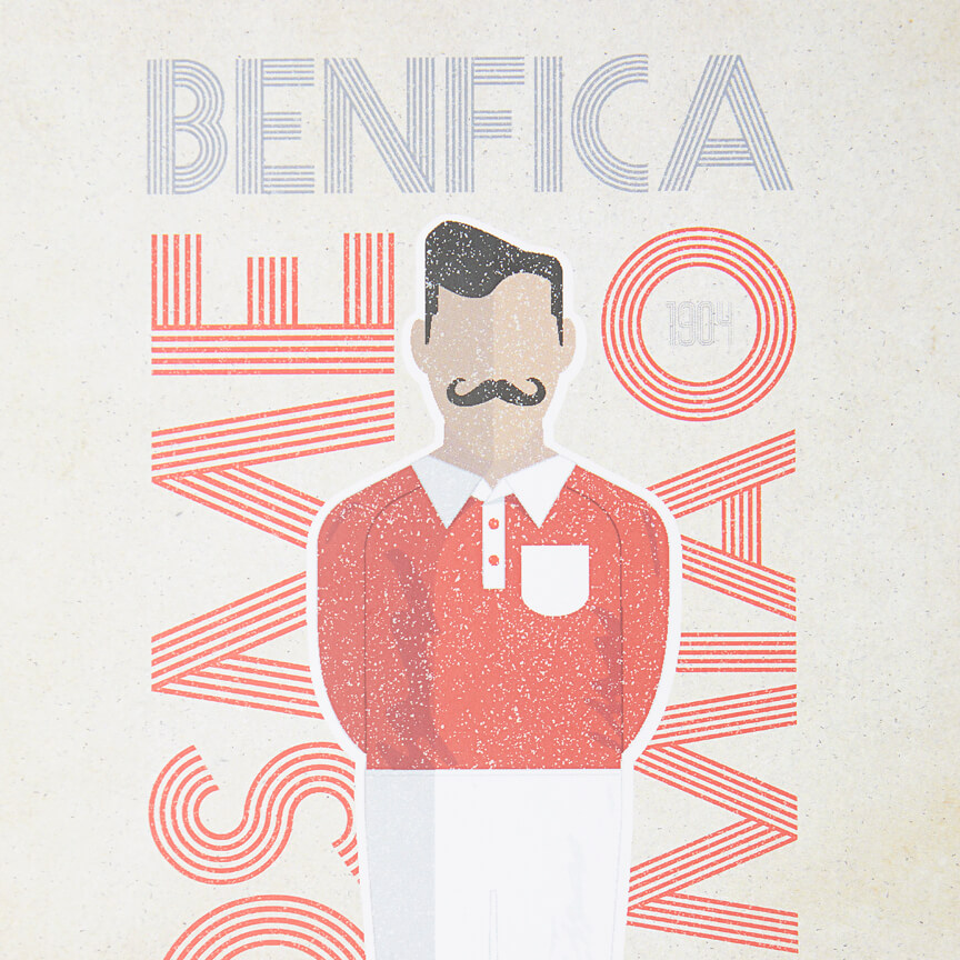 Cahier A5 beige à couverture rigide avec l’illustration du fondateur le plus illustre de SL Benfica, Cosme Damião, sur la couverture.
