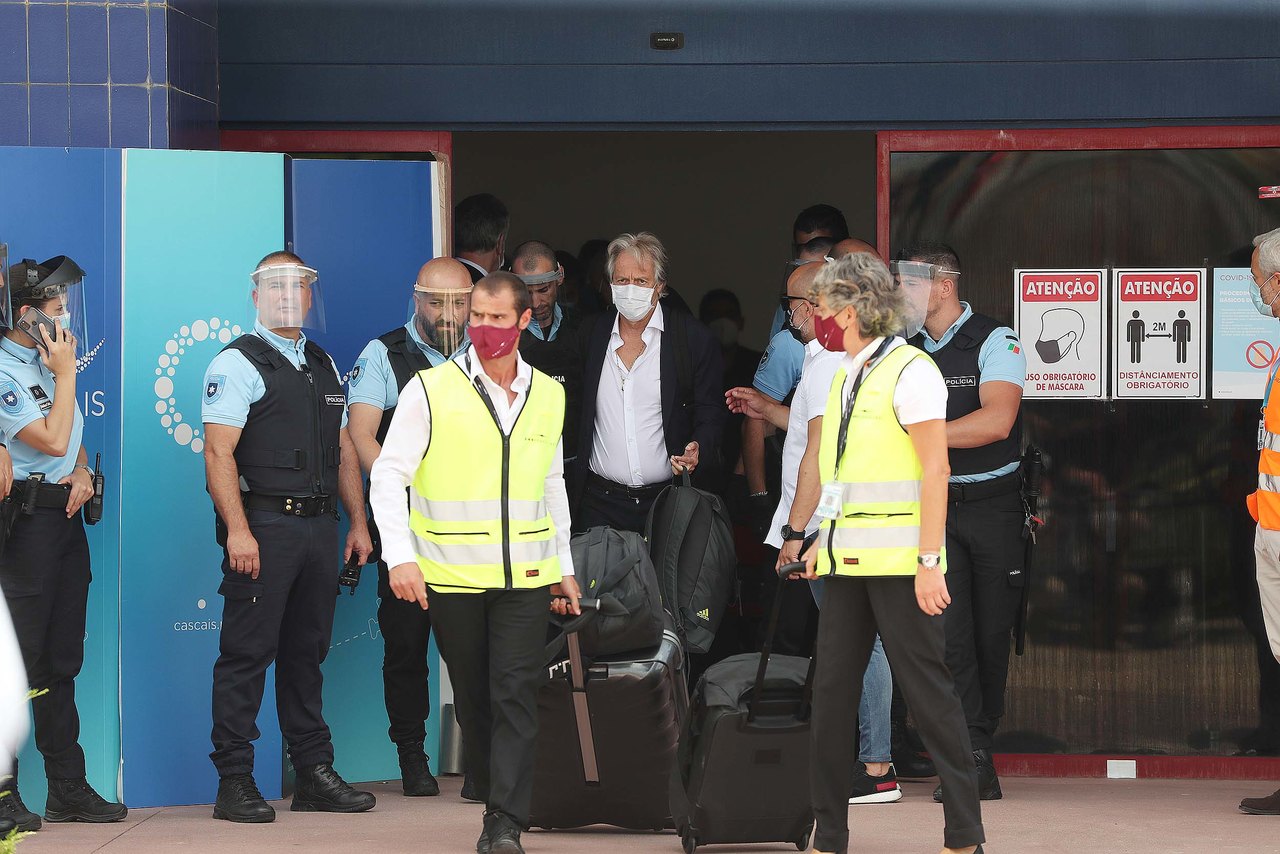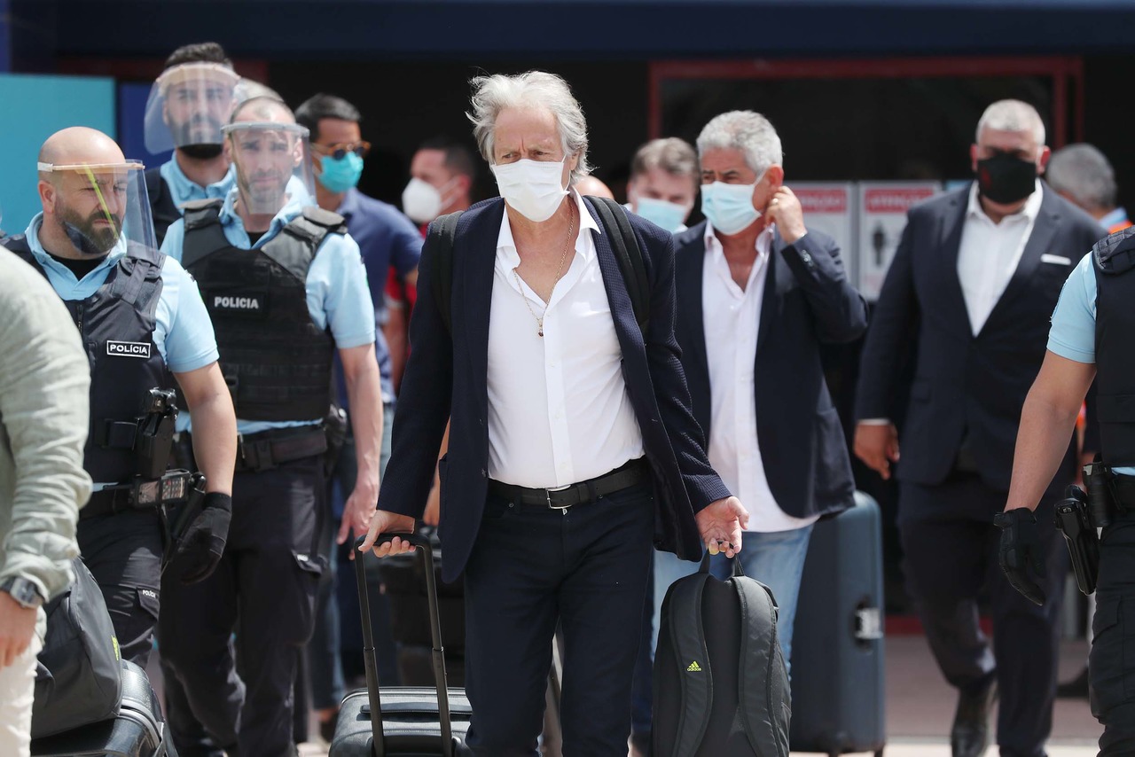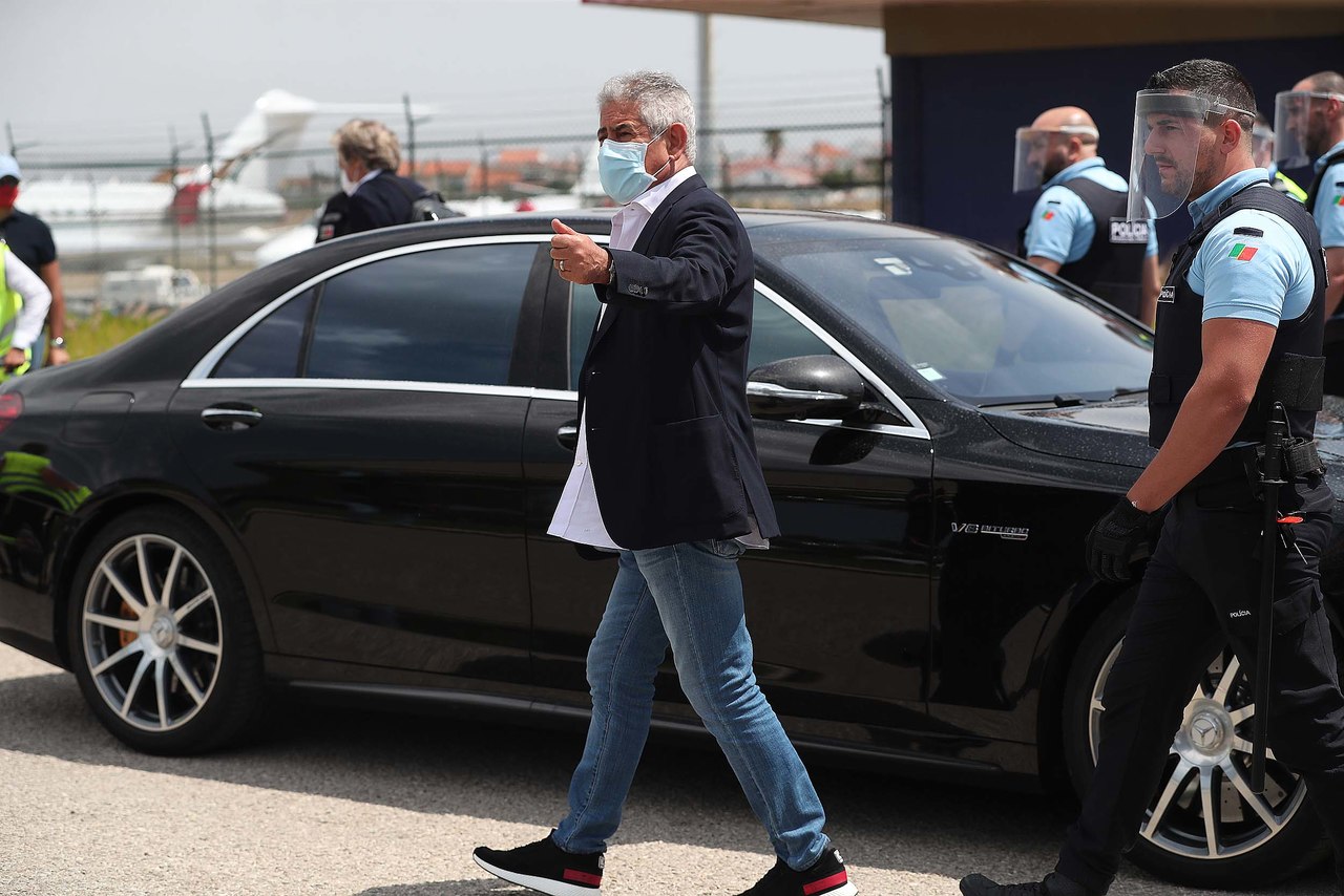 Jorge Jesus, novo treinador do Benfica, em primeiro plano à saída do Aeródromo de Tires