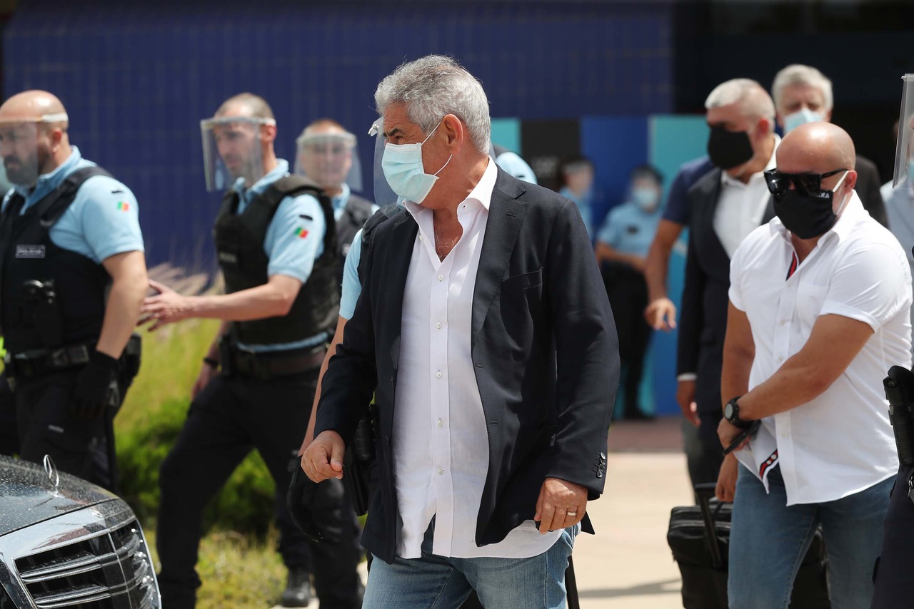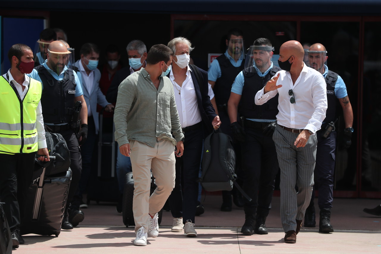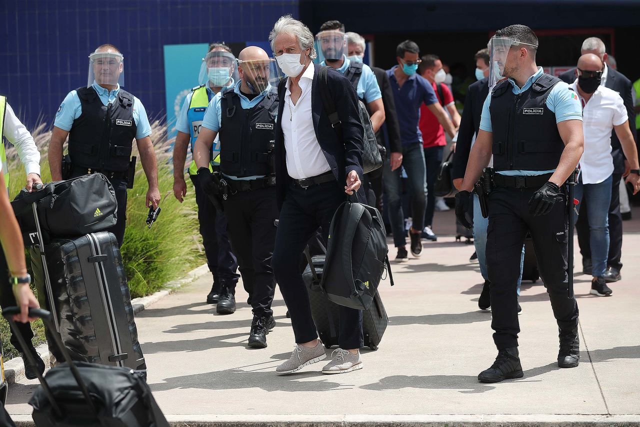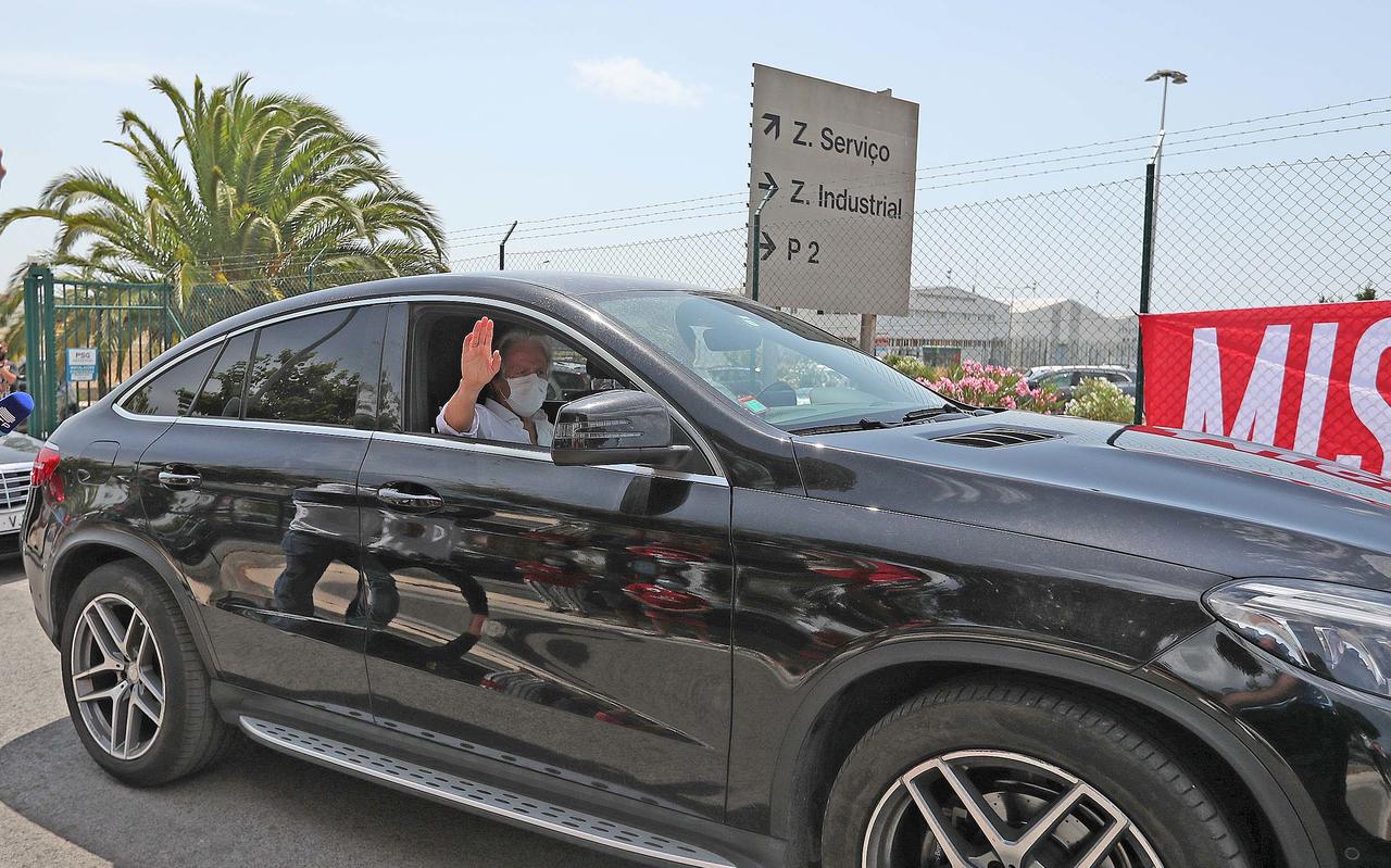 Jorge Jesus, novo treinador do Benfica, em primeiro plano à saída do Aeródromo de Tires