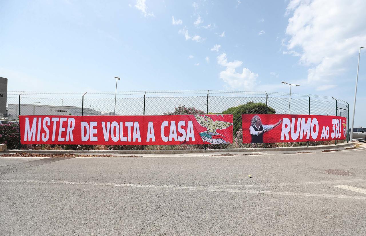 Num voo proveniente do Rio de Janeiro, o Presidente Luís Filipe Vieira regressou nesta terça-feira a Portugal, sendo acompanhado por Jorge Jesus, o novo treinador da equipa de futebol profissional do SL Benfica. A aeronave aterrou no Aeródromo de Tires pouco depois do meio-dia (12h03), e junto à entrada daquela infraestrutura em Cascais, situada a cerca de 20 quilómetros do Estádio da Luz, eram visíveis diversas tarjas com mensagens de boas-vindas e apoio a Jorge Jesus. No retorno a uma casa que foi sua de 2009/10 a 2014/15, pôde sentir de perto o calor e as emoções de muitos dos entusiastas que ali se deslocaram para o receber. Fotos: Isabel Cutileiro / SL Benfica