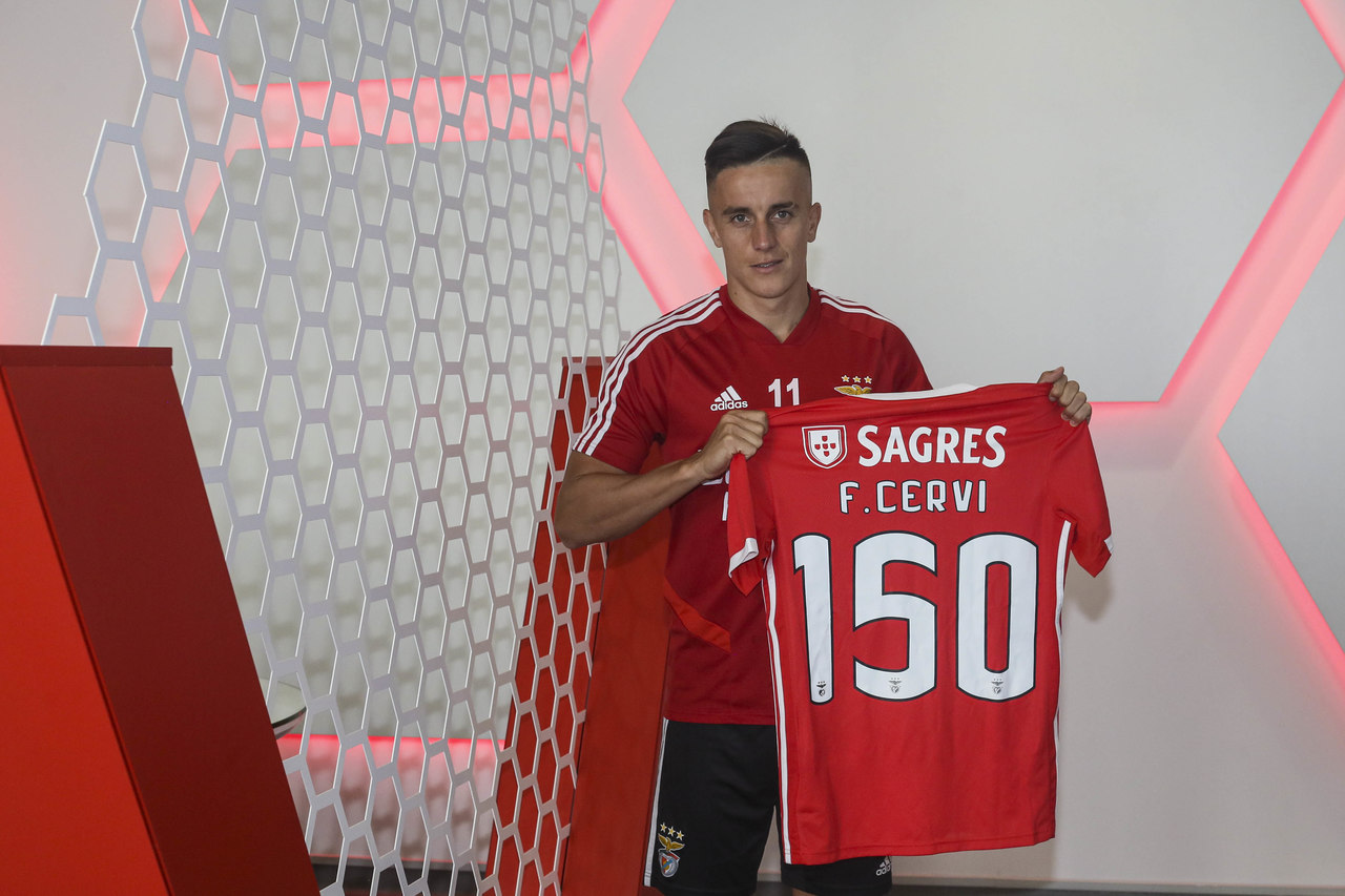 Cervi (n.º 11) foi titular no seu jogo 150 pelo Benfica