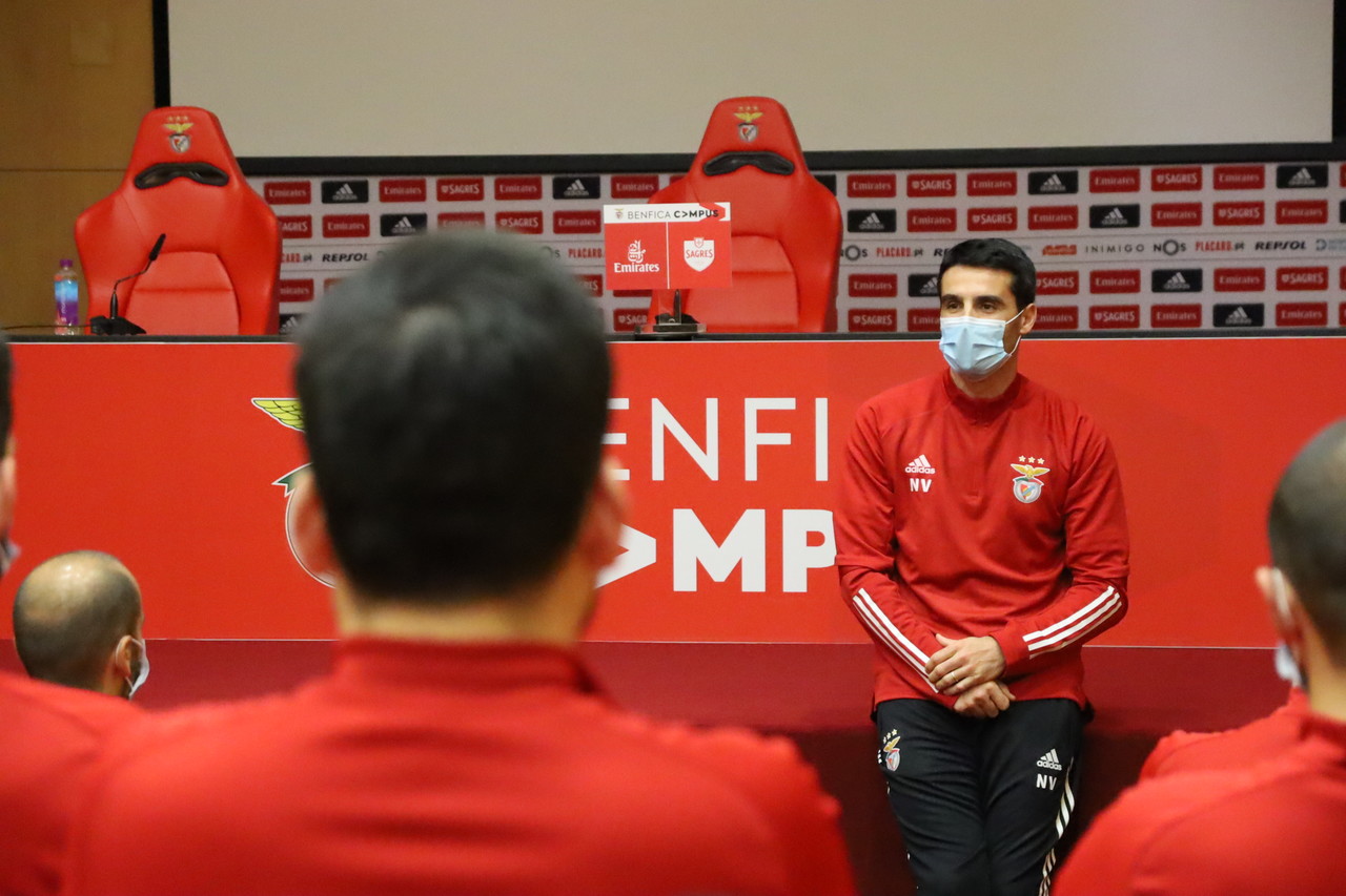 O dia 29 de dezembro de 2020 fica marcado pelo início do trajeto de Nélson Veríssimo como treinador principal do Benfica B. Foi no auditório do Benfica Campus que durante a manhã houve o primeiro contacto com a equipa técnica – nota para a integração do treinador adjunto Paulo Mateus (ex-FC Alverca). Durante o período da tarde, no Campo n.º 4 do quartel-general das águias, realizou-se a primeira sessão de trabalho ministrada pelo técnico de 43 anos. No próximo domingo, dia 3 de janeiro de 2021, a equipa B recebe a UD Oliveirense (11h00) em jogo da 14.ª jornada da II Liga. |Fotos: SL Benfica