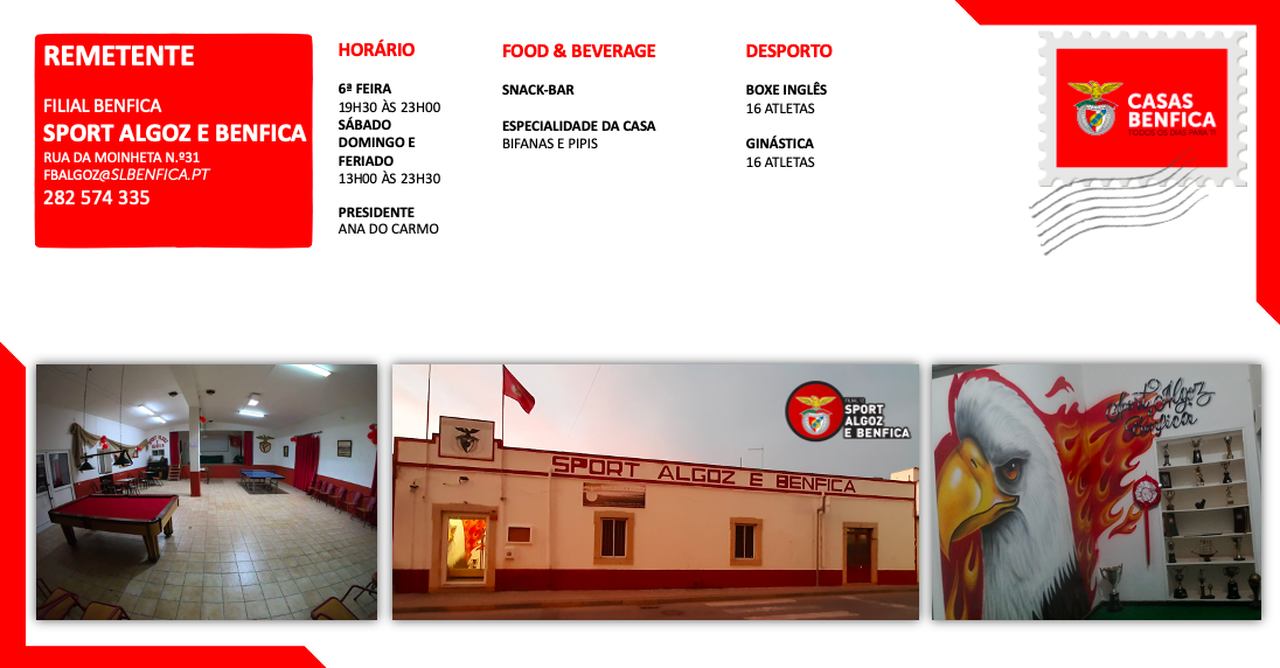 O Sport Algoz e Benfica é um dos clubes mais antigos da região. Foi fundado em 1 de julho de 1938, já como Filial do SL Benfica, sendo hoje a número 12. Nos seus tempos áureos foi campeã regional de ténis de mesa, tendo defrontado a equipa do SL Benfica na sua sede, em Algoz. A Filial tem um enorme espólio de taças que contam a sua história, entre elas a de Campeões do Algarve de futebol em 1939, título maior da instituição. Além das suas festas culturais, tem anualmente a Feira de Artesanato, que, por si só, é um evento de forte dinamização local e traz muitos visitantes à sua sede. Segue com o sonho de voltar a ter um campo de futebol…