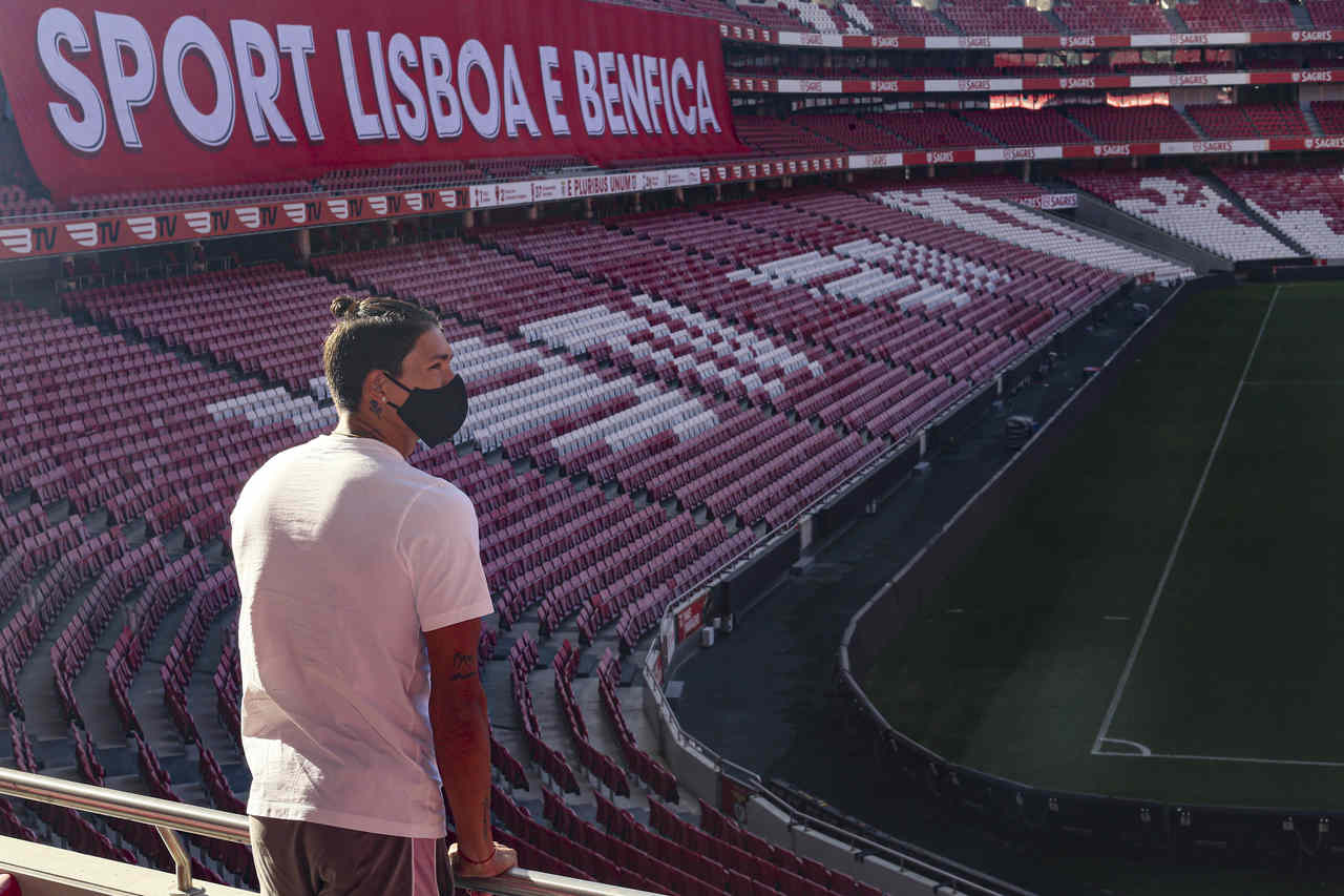 O SL Benfica assegurou a contratação de Darwin, avançado de 21 anos que representava o Almería. O internacional A uruguaio, que vai vestir a camisola 9, foi apresentado na sexta-feira, 4 de setembro, no Benfica Campus. Eis algumas das imagens exclusivas... Fotos: Tânia Paulo / SL Benfica