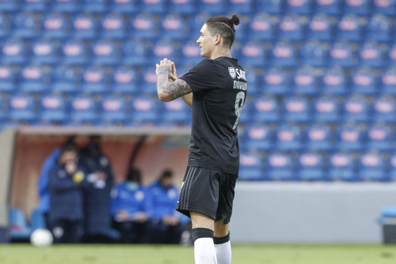 O Benfica começou o ano de 2021 com um empate (1-1) na 12.ª jornada da Liga NOS, diante do Santa Clara, num jogo que decorreu no Estádio de São Miguel, nos Açores. Darwin, aos 33', fez o golo das águias, após uma jogada de entrosamento entre o uruguaio, Luca Waldschmidt e Rafa. |FOTOS: João Paulo Trindade / SL Benfica