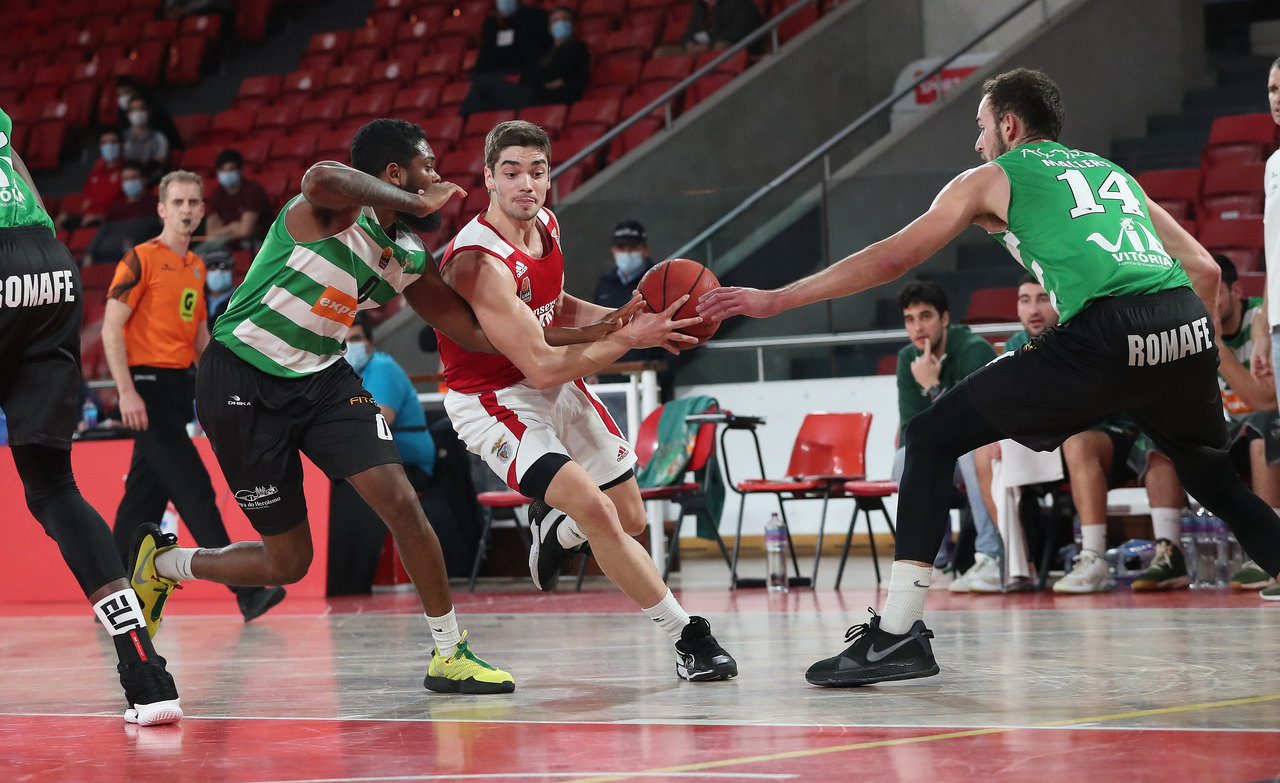 Frente ao Terceira Basket, na Luz, em 2018: três lançamentos, três triplos