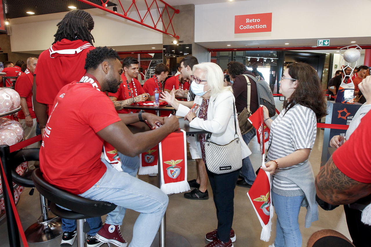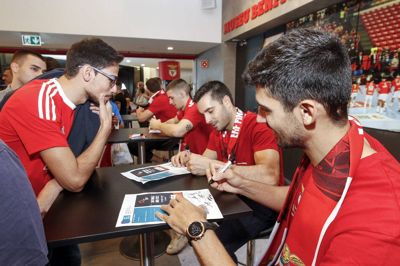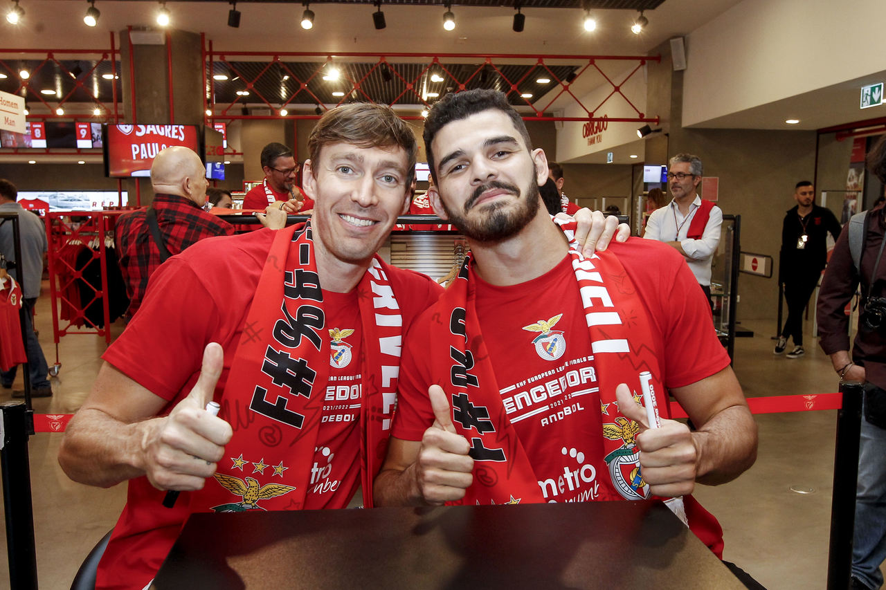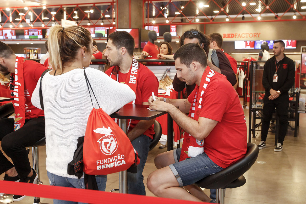 Foi histórica, emocionante e épica a primeira conquista europeia do andebol do Benfica, no dia 29 de maio, frente ao colosso mundial que dá pelo nome de Magdeburgo. Nesta quarta-feira, 1 de junho, a equipa vencedora da EHF European League marcou presença na Benfica Official Store do Estádio da Luz, onde participou numa sessão de autógrafos em que não faltou o carinho dos Benfiquistas, assim como o reconhecimento pelo feito. "Temos de agradecer todo o apoio e calor dos nossos adeptos, foram incansáveis. Grande ambiente que nos empurrou para a vitória. Passado três dias começo a acreditar que conseguimos", atirou o capitão Paulo Moreno, à BTV. Veja aqui as melhores imagens do evento...