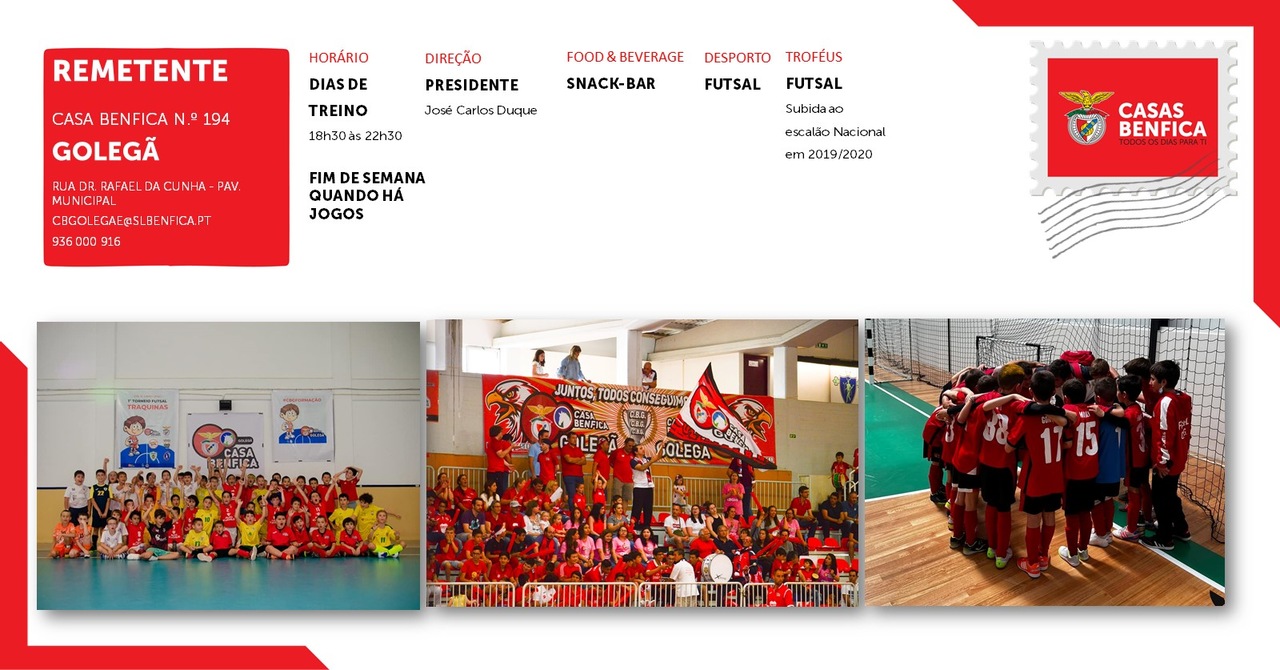 A Casa Benfica Golegã nasceu depois de um almoço entre amigos, a 29 de junho de 2004. De olhos postos no futuro, a embaixada aposta no desporto como angariador de caras novas, sobretudo no futsal que, atualmente com mais de 50 atletas em diversos escalões, está na 2.ª Divisão Nacional de Seniores. Com 18 anos completados recentemente, planeia remodelar a sede e aumentar o número de modalidades para atrair cada vez mais jovens e crianças.