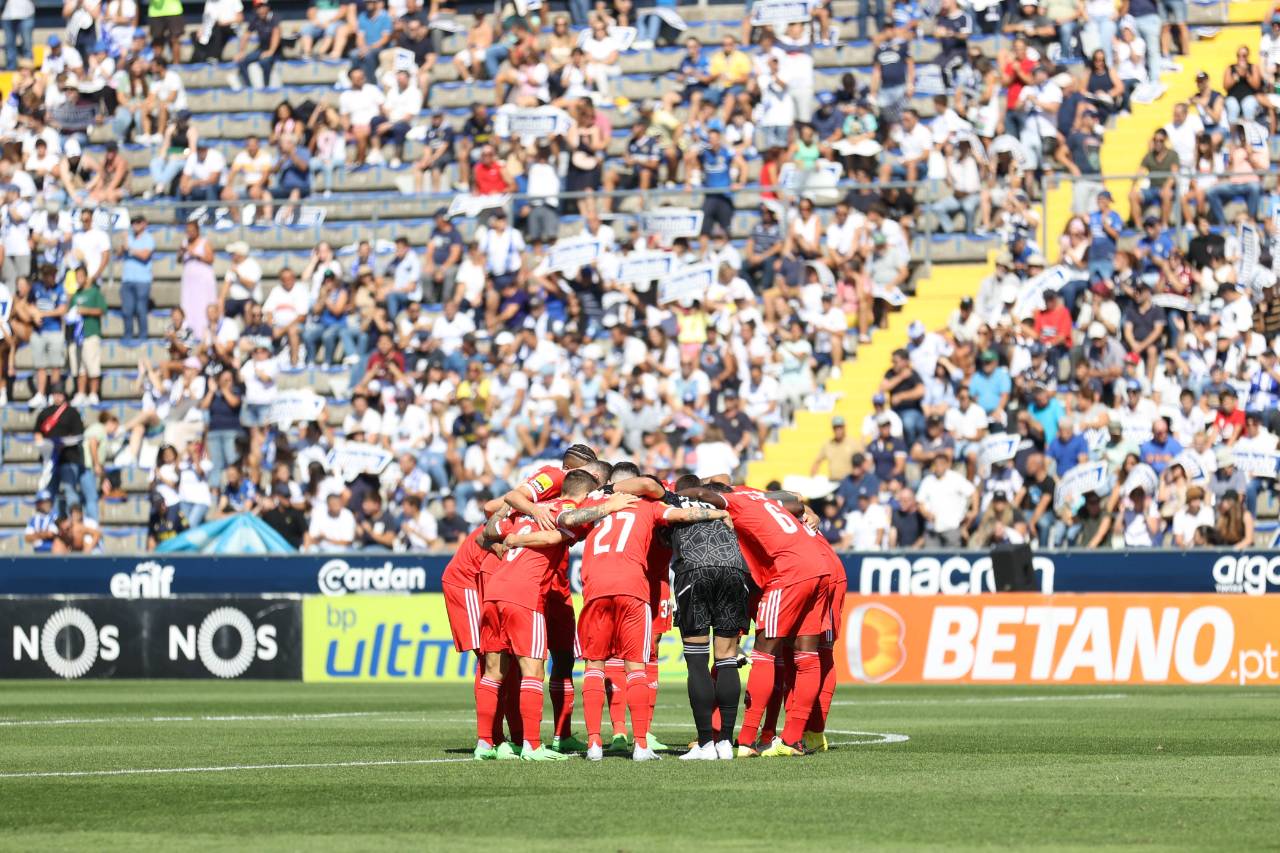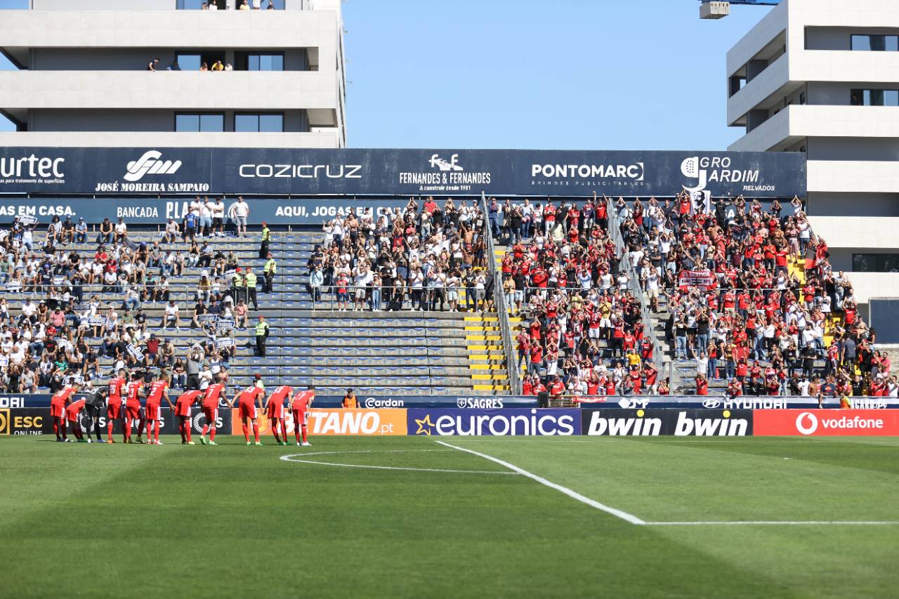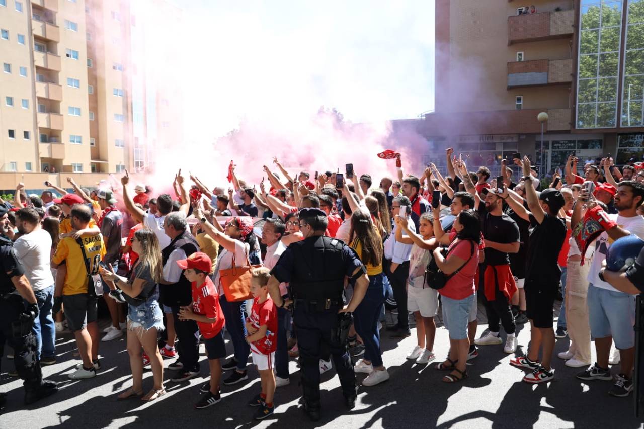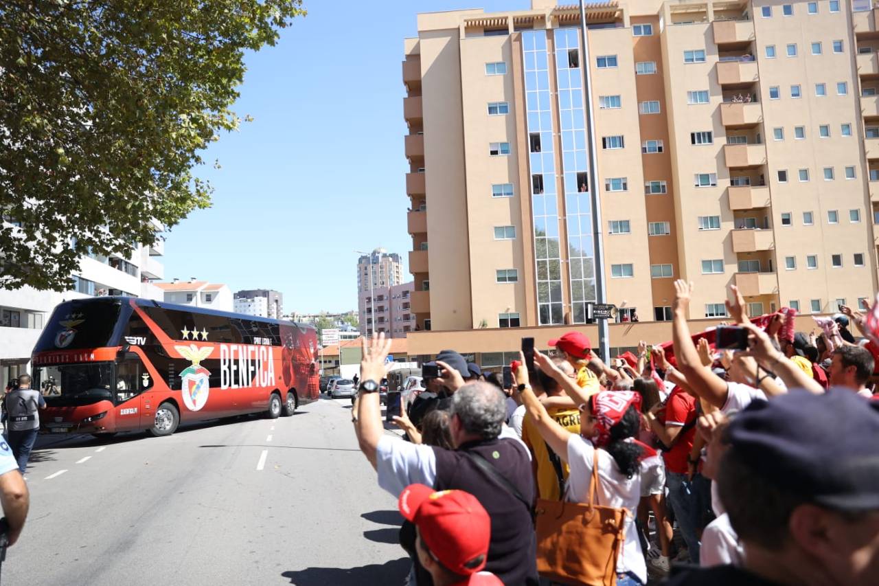 A chegada do autocarro do Benfica ao Estádio Municipal de Famalicão