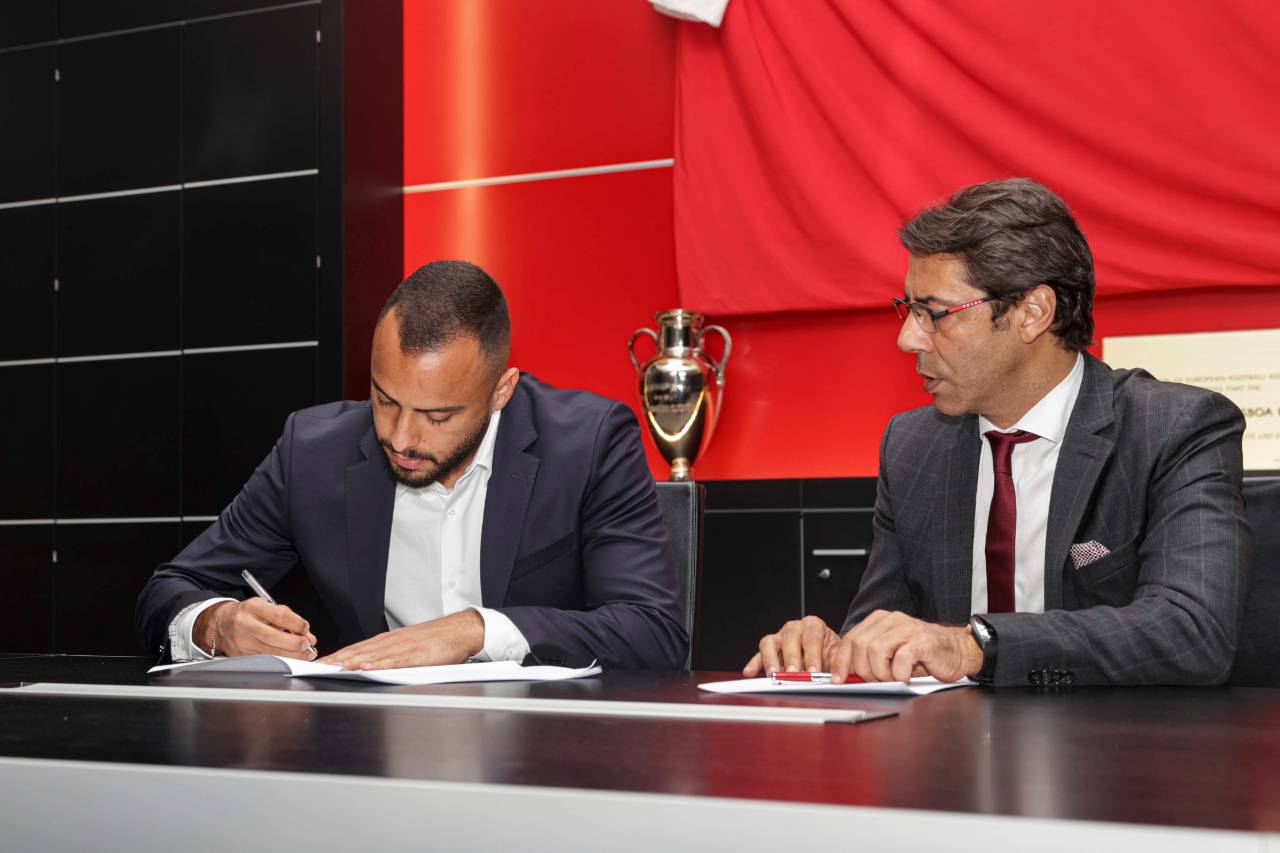 Arthur Cabral com o Presidente Rui Costa, no momento da assinatura de contrato