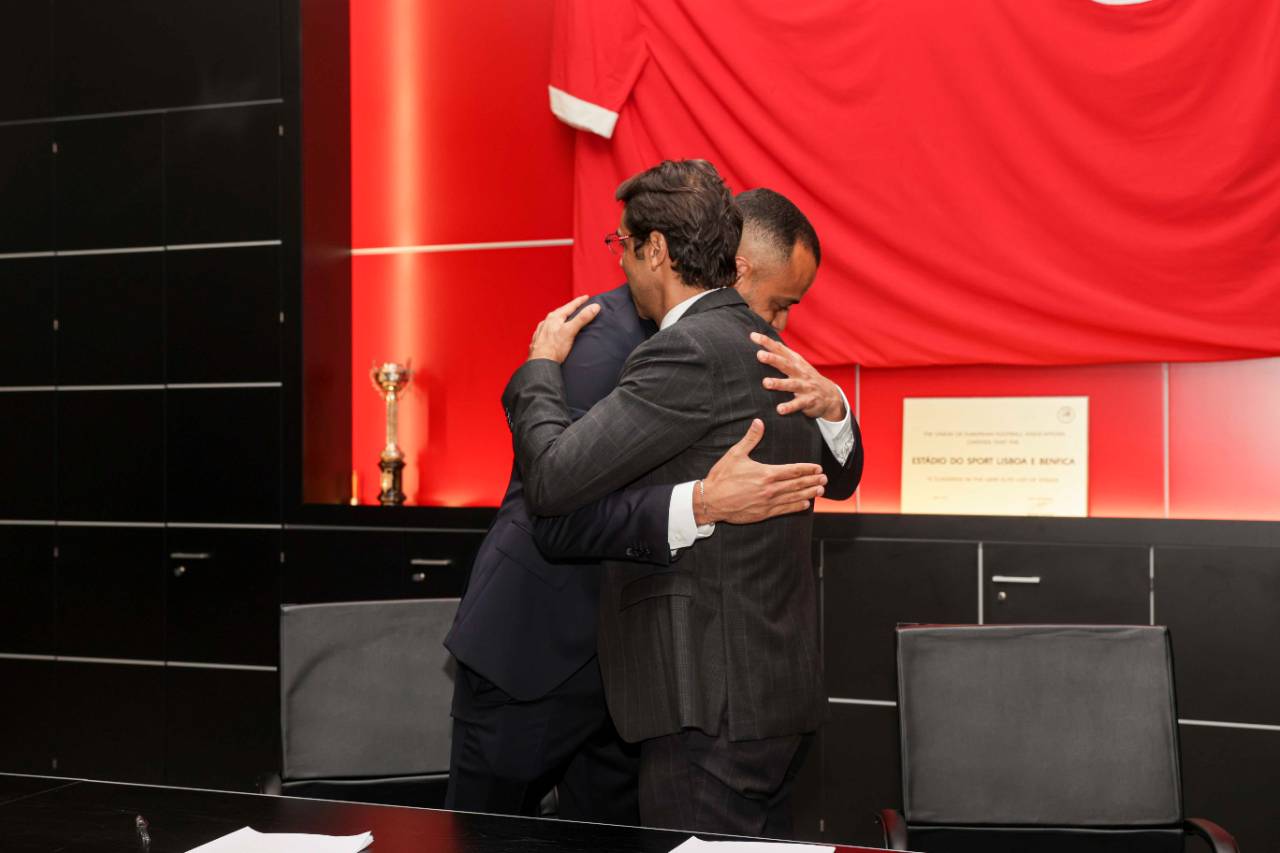 O abraço entre o reforço do Benfica e o Presidente Rui Costa