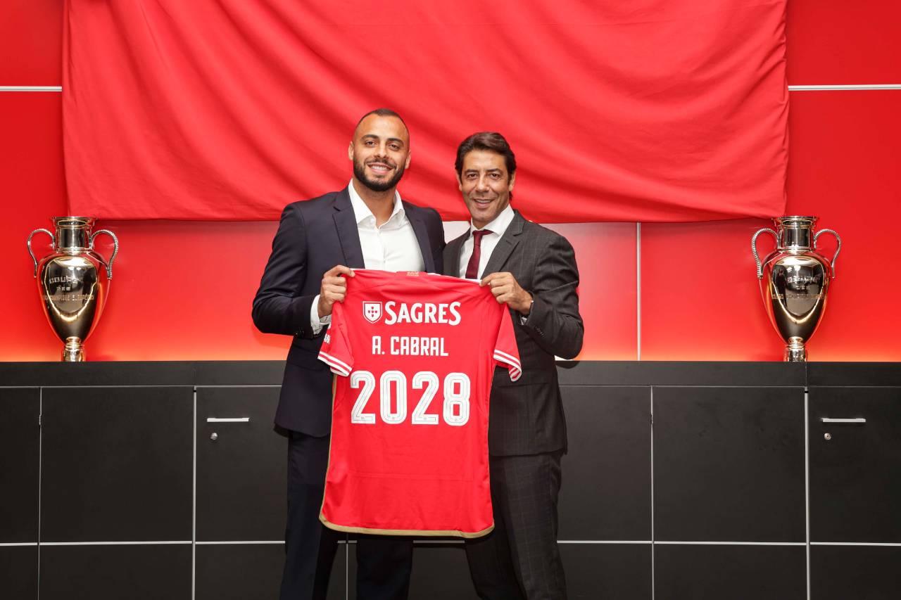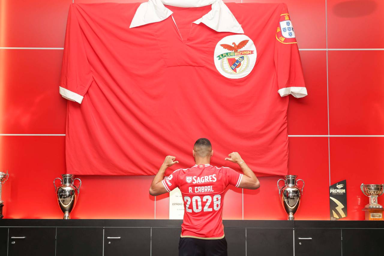 Arthur Cabral já veste o Manto Sagrado! Ao lado Presidente do Clube, Rui Costa, o avançado, contratado à Fiorentina, exibe a camisola das águias, ele que assinou contrato até 2028. Veja as imagens...