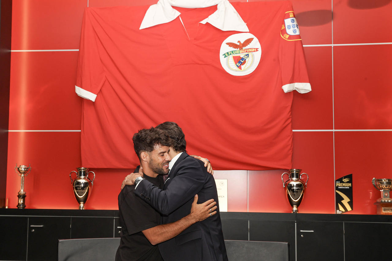 O abraço entre Juan Bernat e o Presidente Rui Costa