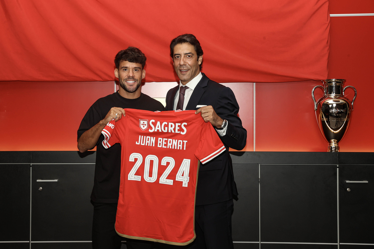Juan Bernat é reforço do Sport Lisboa e Benfica! Ao lado de Rui Costa, Presidente do Clube, o lateral-esquerdo assinou contrato e vestiu, pela primeira vez, o Manto Sagrado. Veja aqui as imagens...