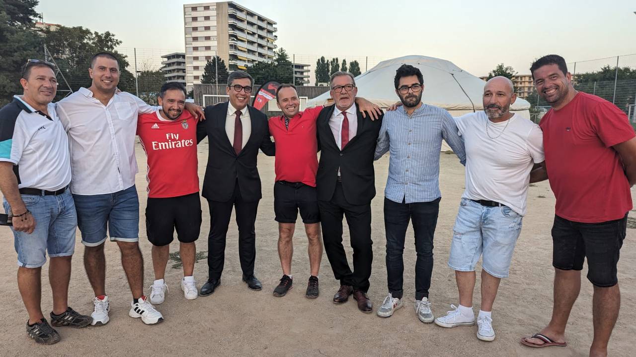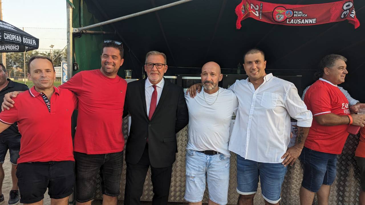 O delegado da Suíça, Frederico Vilaranda, a glória carlos Manuel, o vice-presidente Domingos Almeida Lima, o diretor do departamento das Casas Benfica, Jorge jacinto, juntamente com os antigos presidentes da Filial