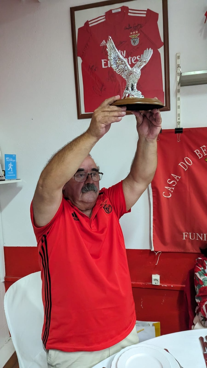 José Coelho, presidente da Casa Benfica Portalegre, ergue a estatueta de uma águia