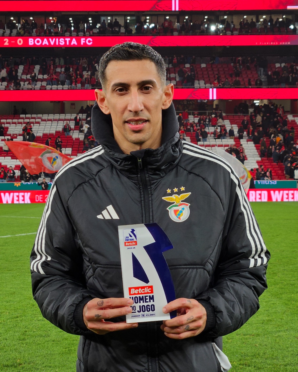 O Benfica recebeu e venceu o Boavista, por 2-0, nesta sexta-feira, 19 de janeiro, em jogo da 18.ª jornada, no arranque da 2.ª volta da Liga Betclic. Di María (61') e Marcos Leonardo (90'+4') marcaram os golos do triunfo das águias no Estádio da Luz. Di María, que também fez uma assistência, foi eleito o Man of the Match (Homem do Jogo). Veja aqui as melhores imagens do encontro...