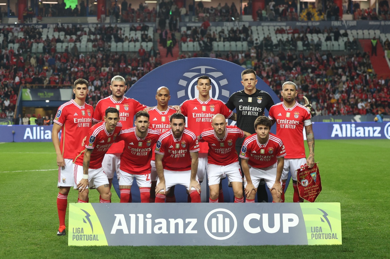 Jogadores do Benfica perfilados no momento do desempate por penáltis