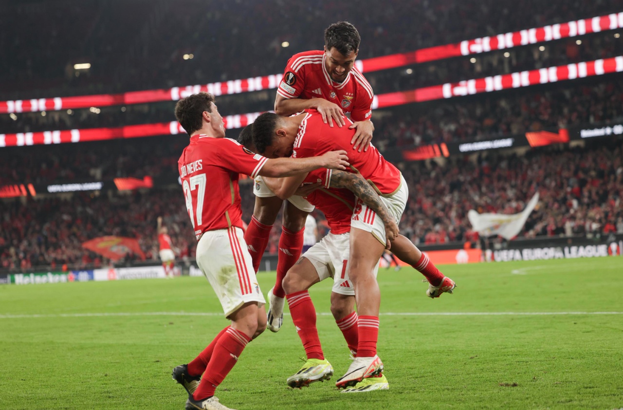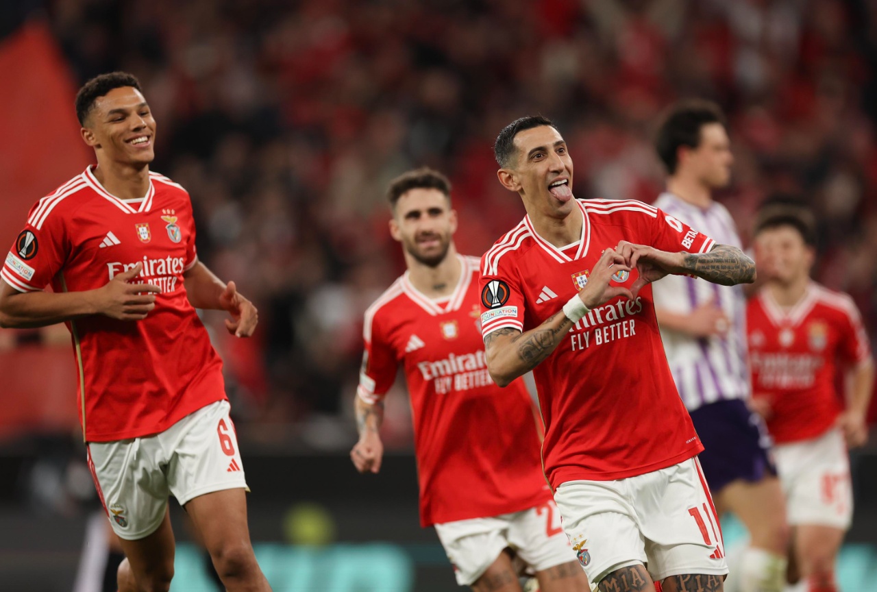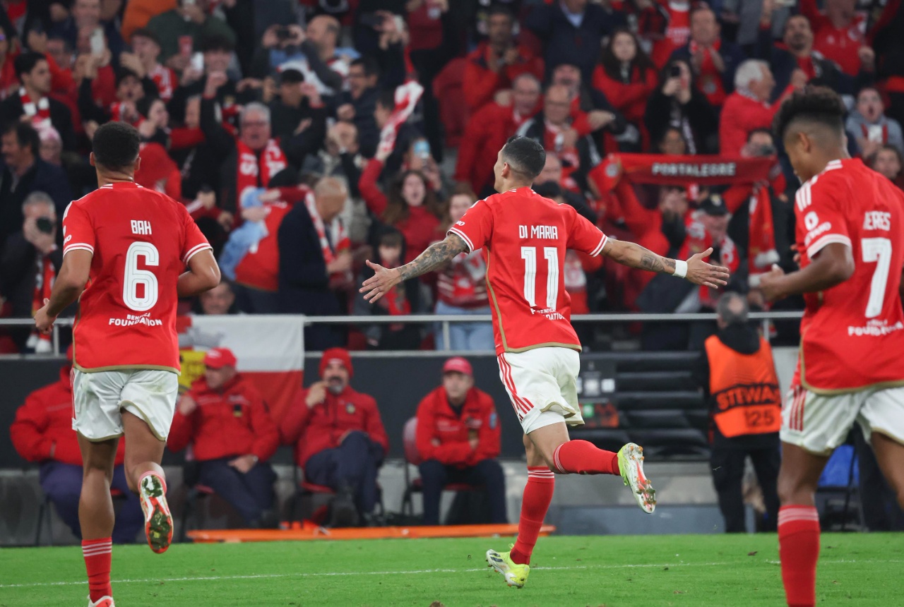 As celebrações dos jogadores do Benfica após o segundo golo de Di María