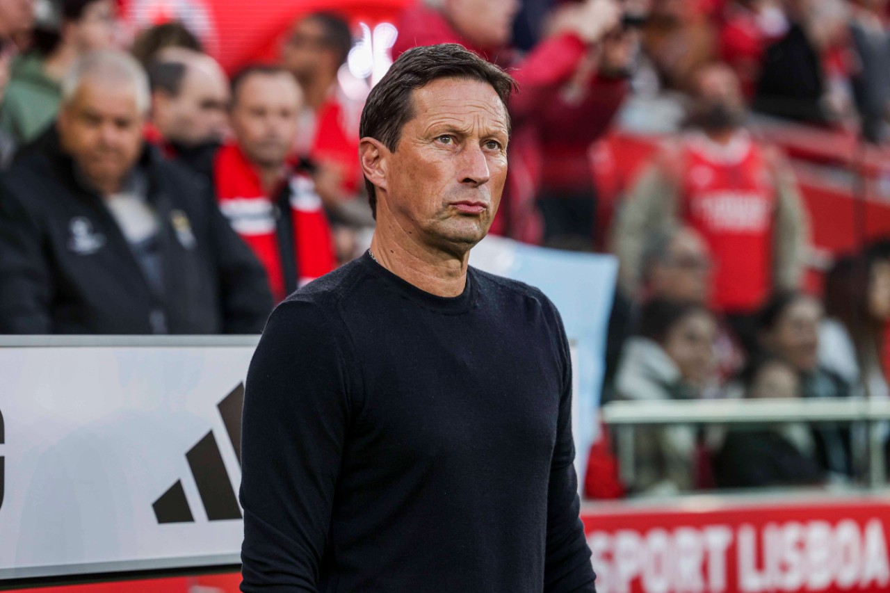 Roger Schmidt e jogadores do Benfica agradecem o apoio dos adeptos, após o final do jogo