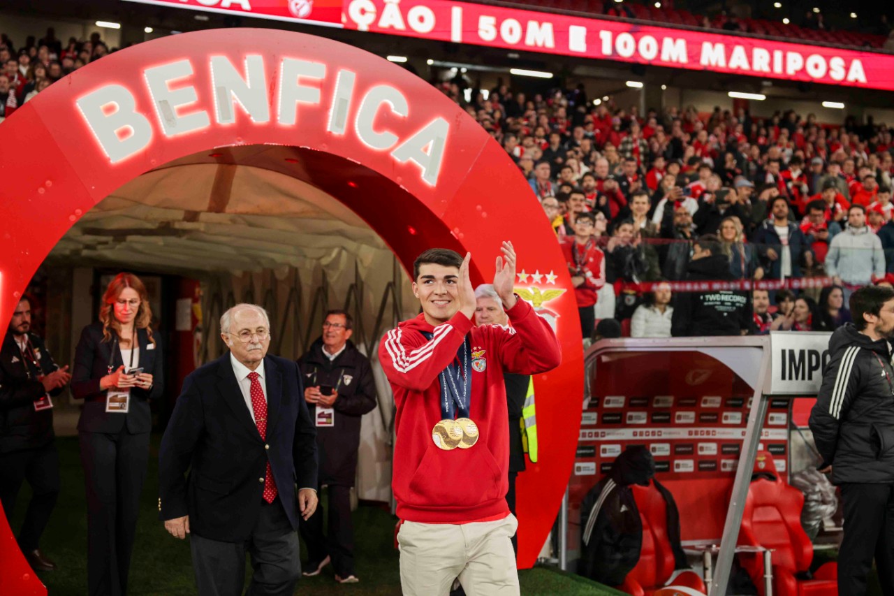 Diogo Ribeiro foi alvo de uma homenagem ao intervalo pelos títulos mundiais de 50 e 100 metros mariposa