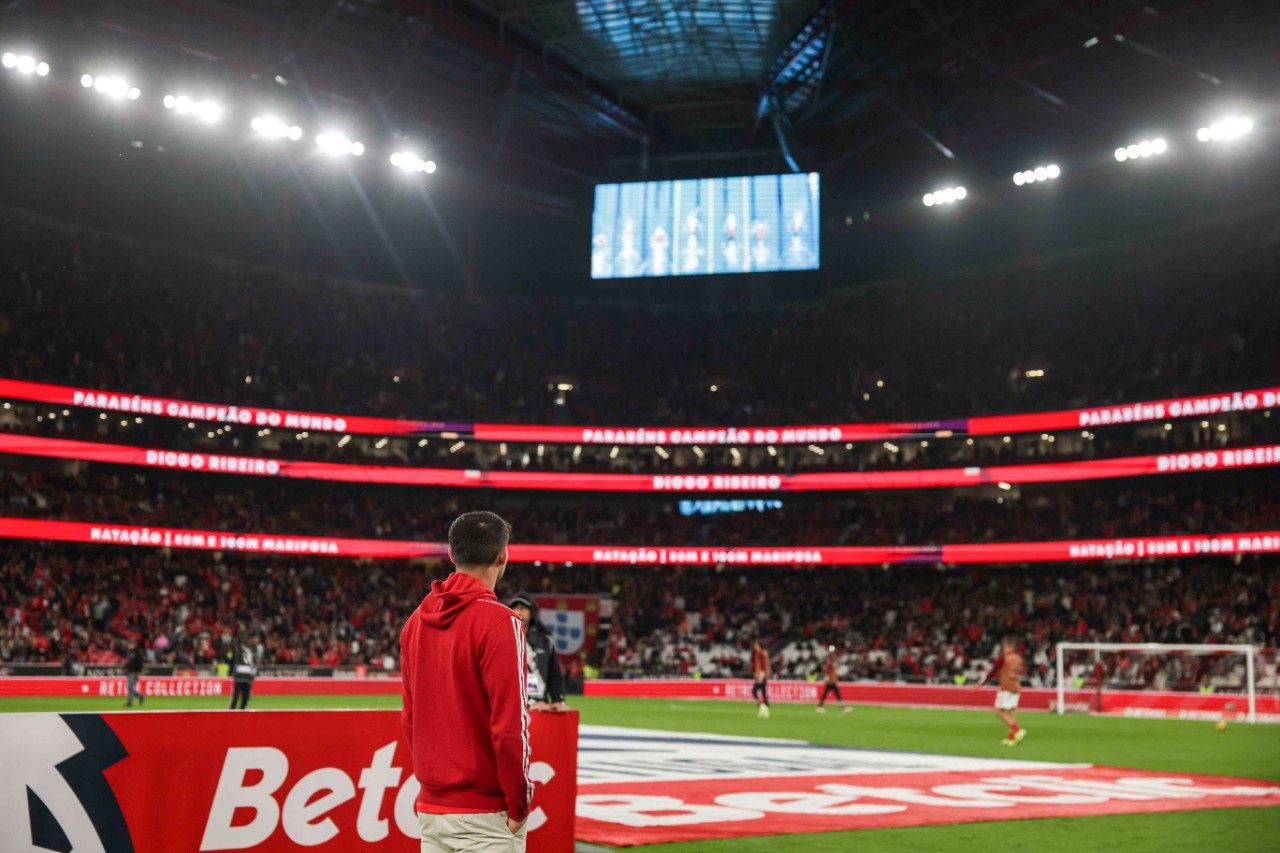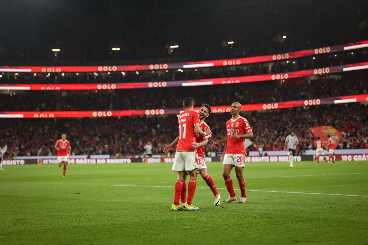 Neste domingo, 25 de fevereiro, o Benfica venceu o Portimonense por 4-0, em jogo válido para a 23.ª jornada da Liga Betclic. Rafa, autor de um bis, Neres e Di María marcaram os golos que deixaram as bancadas do Estádio da Luz em ebulição. Veja aqui as melhores imagens de um duelo também marcado pelas manifestações de apoio a António Silva e João Neves, bem como pela homeangem ao campeão mundial Diogo Ribeiro...