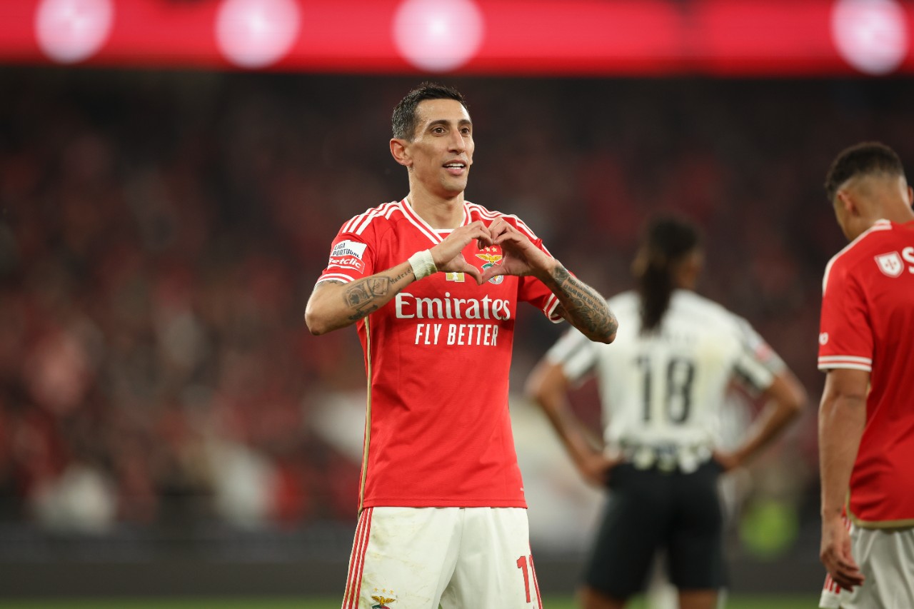 Di María festeja o terceiro do Benfica simbolizando um coração