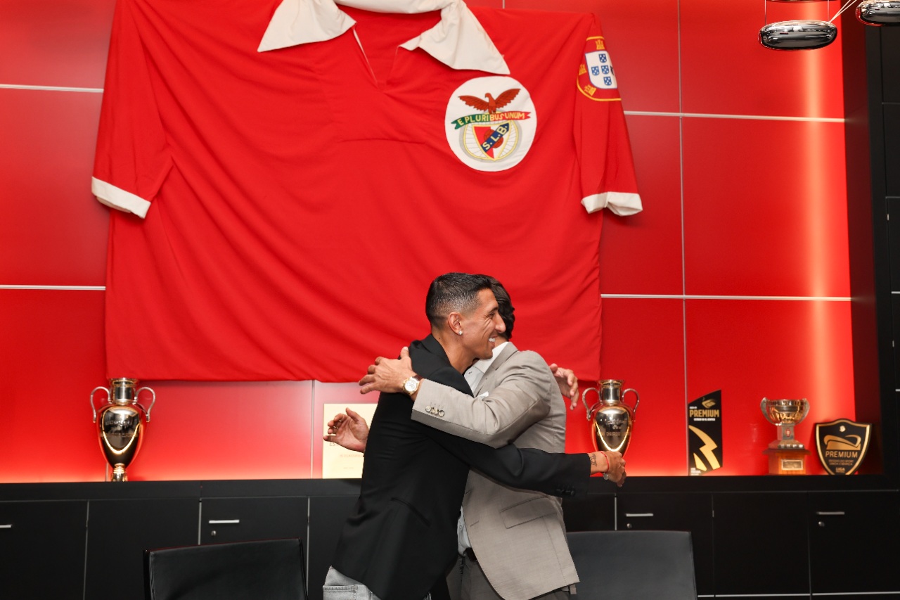 Di María no momento de assinar a renovação de contrato, com o Presidente Rui Costa