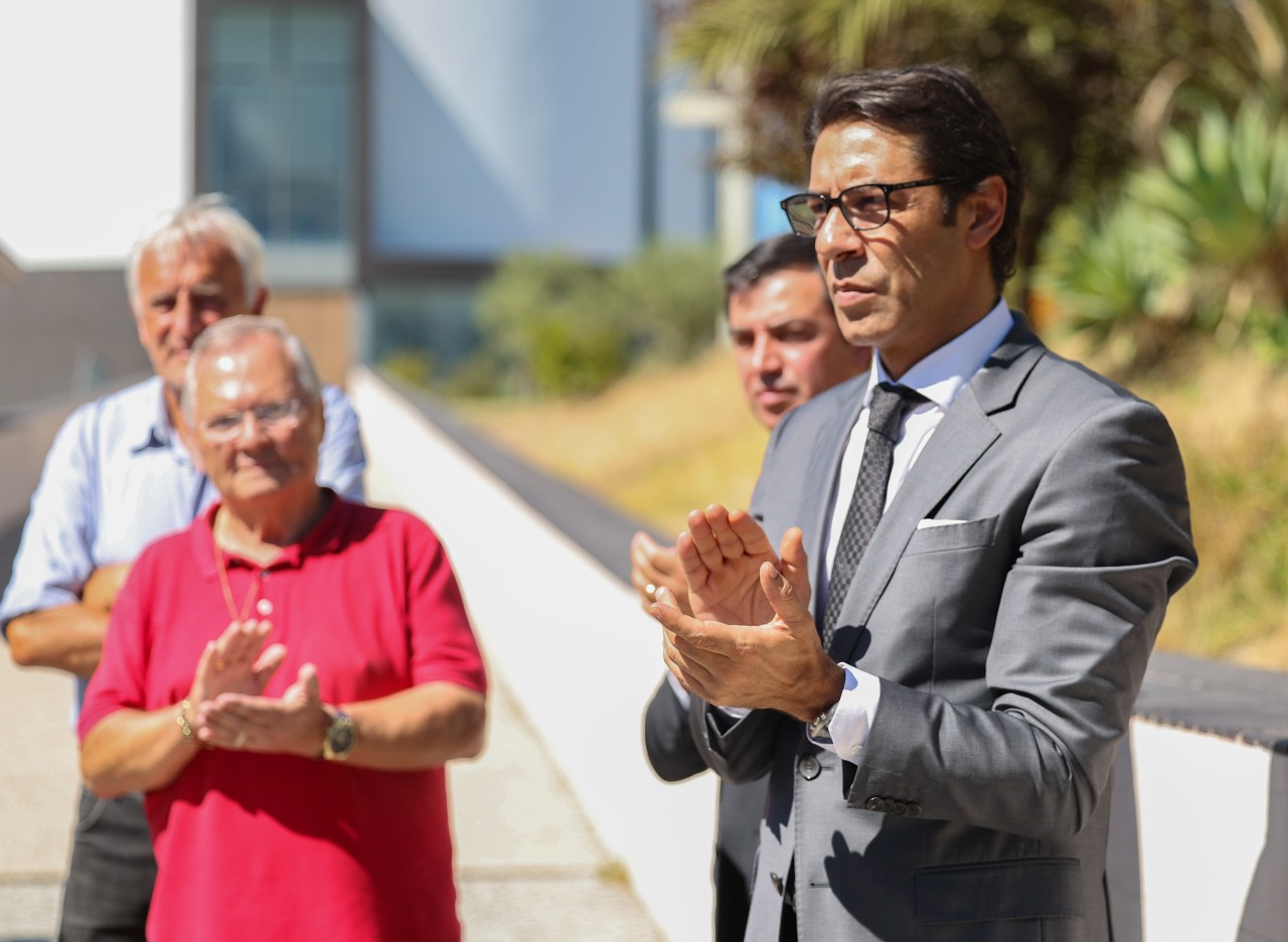 O aplauso do Presidente Rui Costa no momento da homenagem a Adolfo Calisto