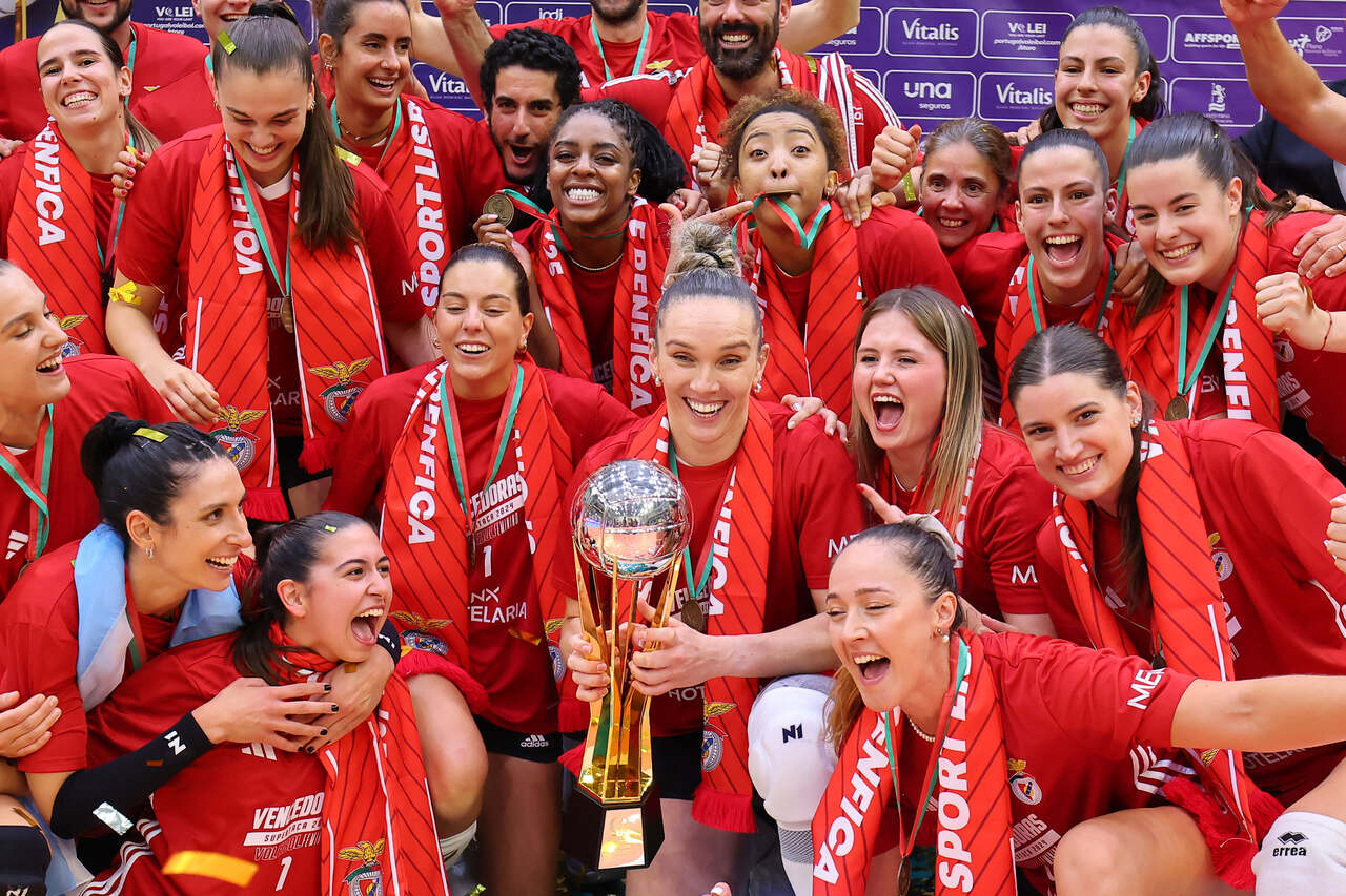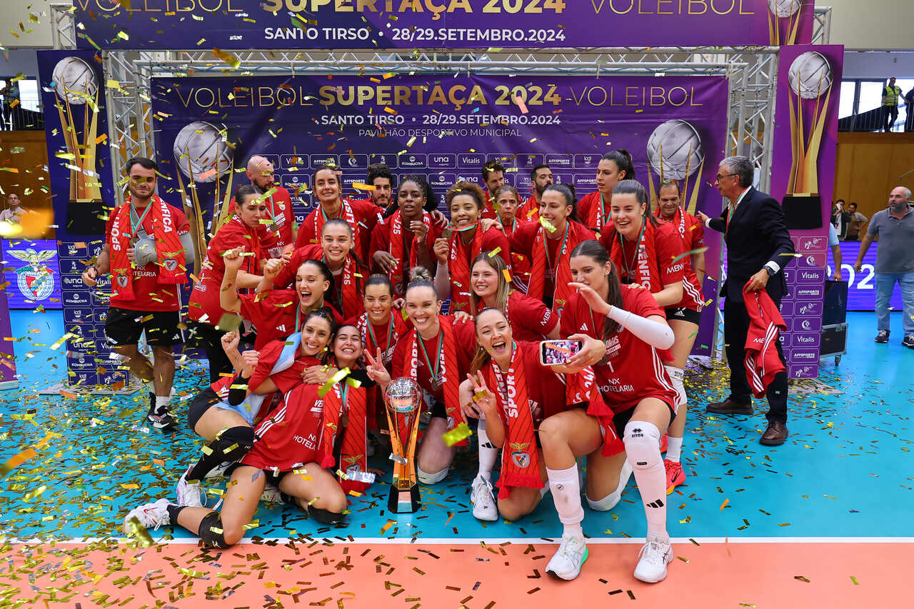O treinador Rui Moreira e as jogadoras antes do arranque do clássico