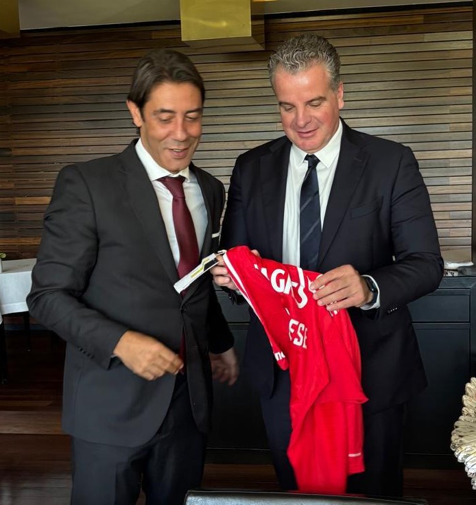 Presidente Rui Costa recebeu uma lembrança do Feyenoord, das mãos do CEO Dennis te Kloese